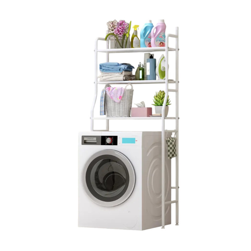 Επιδαπέδια ραφιέρα μπάνιου μεταλλική, συναρμολογούμενη, με 3 πρακτικά ράφια, ιδανική για οργάνωση και εξοικονόμηση χώρου καθώς τοποθετείται επάνω από το πλύντήριο σας. Διαστάσεις: 68 × 26 x 158cm.