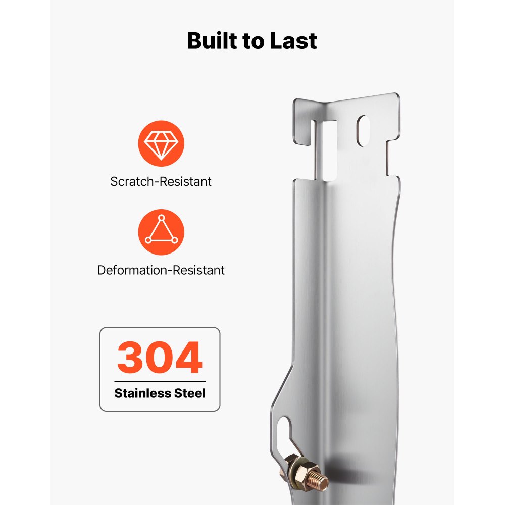 Εύκολη μέτρηση γωνίας δακτύλων: Αυτό το εργαλείο ευθυγράμμισης τροχών παρέχει ακριβή ευθυγράμμιση δακτύλων και μετρά το πλάτος του ιχναριού του τροχού χωρίς διόγκωση του ελαστικού ή παρεμβολές στα γράμματα. Τα ελαστικά πρέπει να αποσυνδεθούν και οι πλάκες να στερεωθούν σταθερά στην πλήμνη του δίσκου φρένων με βίδες. Εξαιρετικά ευέλικτο: Οι πλάκες ευθυγράμμισης των δακτύλων περιλαμβάνουν αποσπώμενες πλάκες επέκτασης και δύο μεθόδους τοποθέτησης. Ταιριάζουν στα περισσότερα sedan, φορτηγά και SUV με δισκόφρενα και προσαρμόζονται σε χαμηλό σασί ή σε μοναδικές ρυθμίσεις δαγκάνας, όπως σπορ αυτοκίνητα και οχήματα εκτός δρόμου. Ακριβές και αξιόπιστο: Οι πλάκες του εργαλείου ευθυγράμμισης των δακτύλων διαθέτουν αντιολισθητικές αυλακώσεις για να συγκρατούν τις κεφαλές της μετροταινίας σταθερά στη θέση τους, εξασφαλίζοντας σταθερές και ακριβείς μετρήσεις. Εξοπλισμένες με δύο μετροταινίες 3 μέτρων με ακρίβεια 1/16, παρέχουν ακριβή δεδομένα. Ανθεκτική κατασκευή: Κατασκευασμένες από ανοξείδωτο ατσάλι 304, αυτές οι πλάκες δακτύλων είναι ανθεκτικές στην παραμόρφωση, τη φθορά, το νερό και το λάδι. Εξασφαλίζουν μακροχρόνια, συνεπή και αξιόπιστα αποτελέσματα μέτρησης. Άνετη αποθήκευση: Τόσο οι μακριές πλάκες όσο και οι πλάκες επέκτασης των πλακών ευθυγράμμισης μπορούν να τοποθετηθούν στον τοίχο, διατηρώντας τον χώρο εργασίας σας τακτοποιημένο, οργανωμένο και έτοιμο για χρήση.