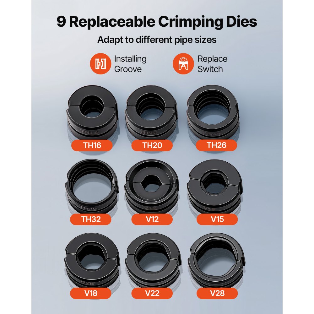 Ευέλικτα μεγέθη σιαγόνων: Αυτό το υδραυλικό εργαλείο πτύχωσης σωλήνων διαθέτει 4 σιαγόνες πτύχωσης (TH16, TH20, TH26, TH32) για σωλήνες PEX και αλουμινίου-πλαστικού και 5 σιαγόνες πτύχωσης (V12, V15, V18, V22, V28) για σωλήνες από ανοξείδωτο χάλυβα. Αποδοτικό και εύκολο: Χρησιμοποιώντας ένα υδραυλικό σύστημα υψηλής απόδοσης, το πρεσάρισμα σωλήνων PEX/αλουμινίου-πλαστικού/ανοξείδωτου χάλυβα παρέχει σταθερή, ομοιόμορφη πίεση για γρήγορες, χωρίς διαρροές πρεσάρισμα - ενισχύοντας την αποδοτικότητα της εργασίας και εξασφαλίζοντας συνδέσεις υψηλής ποιότητας. Ευέλικτη λειτουργία: Κατασκευασμένο με ανθεκτική σιδερένια λαβή και αντιολισθητική λαστιχένια λαβή για σταθερό και άνετο κράτημα. Και ο διακόπτης της βαλβίδας εκτόνωσης πίεσης προσφέρει εύκολο έλεγχο - σφίξτε για να ασκήσετε πίεση και χαλαρώστε για να την απελευθερώσετε, εξασφαλίζοντας ομαλή και ακριβή λειτουργία. Εύκολο στη χρήση και τη μεταφορά: Με περιστρεφόμενη κεφαλή 360° και λεπτό σώμα, αυτό το εργαλείο πτύχωσης σωλήνων είναι ιδανικό για χρήση σε περιορισμένους ή δυσπρόσιτους χώρους. Περιλαμβάνει επίσης μια ανθεκτική θήκη μεταφοράς για να διατηρείτε όλα τα εργαλεία οργανωμένα, προσφέροντας αξιόπιστη προστασία και εύκολη μεταφορά. Ευρείες εφαρμογές: Κατάλληλο για ίσια, καμπυλωτά και ταυ εξαρτήματα, το υδραυλικά κινούμενο εργαλείο πτύχωσης σωλήνων μας είναι ευέλικτο για την εγκατάσταση και επισκευή σωλήνων σε οικιακά υδραυλικά, συστήματα HVAC και βιομηχανικά έργα σωληνώσεων, εξασφαλίζοντας υψηλής ποιότητας πτύχωση και ασφαλείς συνδέσεις.