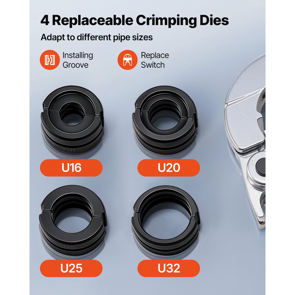 4 Ευέλικτα Μεγέθη Σιαγόνων: Αυτό το υδραυλικό εργαλείο πτύχωσης σωλήνων, σχεδιασμένο για σωλήνες PEX και αλουμινίου-πλαστικού, περιλαμβάνει 4 εναλλάξιμες σιαγόνες πτύχωσης (U16, U20, U25, U32), καλύπτοντας μια σειρά μεγεθών σωλήνων για την κάλυψη διαφόρων αναγκών πτύχωσης. Αποδοτικό και εύκολο: Χρησιμοποιώντας ένα υδραυλικό σύστημα υψηλής απόδοσης, το πρεσάρισμα σωλήνων PEX και αλουμινίου-πλαστικού παρέχει σταθερή, ομοιόμορφη πίεση για γρήγορες, χωρίς διαρροές πρεσάρισμα — ενισχύοντας την αποδοτικότητα της εργασίας και εξασφαλίζοντας συνδέσεις υψηλής ποιότητας. Ευέλικτη λειτουργία: Κατασκευασμένο με ανθεκτική σιδερένια λαβή και αντιολισθητική λαστιχένια λαβή για σταθερό και άνετο κράτημα. Και ο διακόπτης της βαλβίδας εκτόνωσης πίεσης προσφέρει εύκολο έλεγχο - σφίξτε για να ασκήσετε πίεση και χαλαρώστε για να την απελευθερώσετε, εξασφαλίζοντας ομαλή και ακριβή λειτουργία. Εύκολο στη χρήση και τη μεταφορά: Με περιστρεφόμενη κεφαλή 360° και λεπτό σώμα, αυτό το εργαλείο πτύχωσης σωλήνων είναι ιδανικό για χρήση σε περιορισμένους ή δυσπρόσιτους χώρους. Περιλαμβάνει επίσης μια ανθεκτική θήκη μεταφοράς για να διατηρείτε όλα τα εργαλεία οργανωμένα, προσφέροντας αξιόπιστη προστασία και εύκολη μεταφορά. Ευρείες εφαρμογές: Είτε πρόκειται για εγκατάσταση και επισκευή σωλήνων σε οικιακές υδραυλικές εγκαταστάσεις, συστήματα HVAC και βιομηχανικά έργα σωληνώσεων, το υδραυλικό μας εργαλείο πτύχωσης σωλήνων παρέχει σταθερές και ασφαλείς συνδέσεις σωλήνων, εξασφαλίζοντας αποτελεσματική και αξιόπιστη απόδοση.
