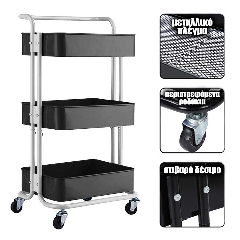 ΜΕ ΡΟΔΕΣ ΚΥΛΙΣΗΣ ΚΑΙ ΧΕΡΟΥΛΙ ΓΙΑ ΕΥΚΟΛΗ ΜΕΤΑΦΟΡΑΕΠΙΠΛΕΟΝ ΕΚΠΤΩΣΗ ΓΙΑ ΠΟΛΛΑ ΤΕΜΑΧΙΑ ΚΑΤΟΠΙΝ ΣΥΝΝΕΝΟΗΣΗΣ Εργαλειοφορέας τροχήλατος βαρέως τύπου. Εύκολη μεταφορά προϊόντων, εργαλείων, αναλωσίμων μεταξύ σημείων εντός του χώρου εργασίας. Με χερούλι μεταφοράς και μεταλλικό πλέγμα στους πάτους. Εύκολη συναρμολόγηση. Μεγάλη διάρκεια ζωής, εξ' ολοκλήρου κατασκευασμένο από ατσάλι. Διατίθεται σε 3 ή 4 επίπεδα και 12 χρωματισμούς για να ταιριάζει με την αισθητική του χώρου.