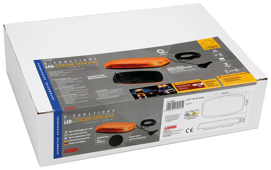 ΦΑΡΟΣ/ΣΤΡΟΜΠΟ MINI BAR 12/24V 38W 84LED ΠΟΡΤΟΚΑΛΙ 7 ΧΡΗΣΕΩΝ ΜΕ ΦΙΣ ΑΝΑΠΤΗΡΑ ΜΑΓΝΗΤΙΚΟ 304,5x157,4mm