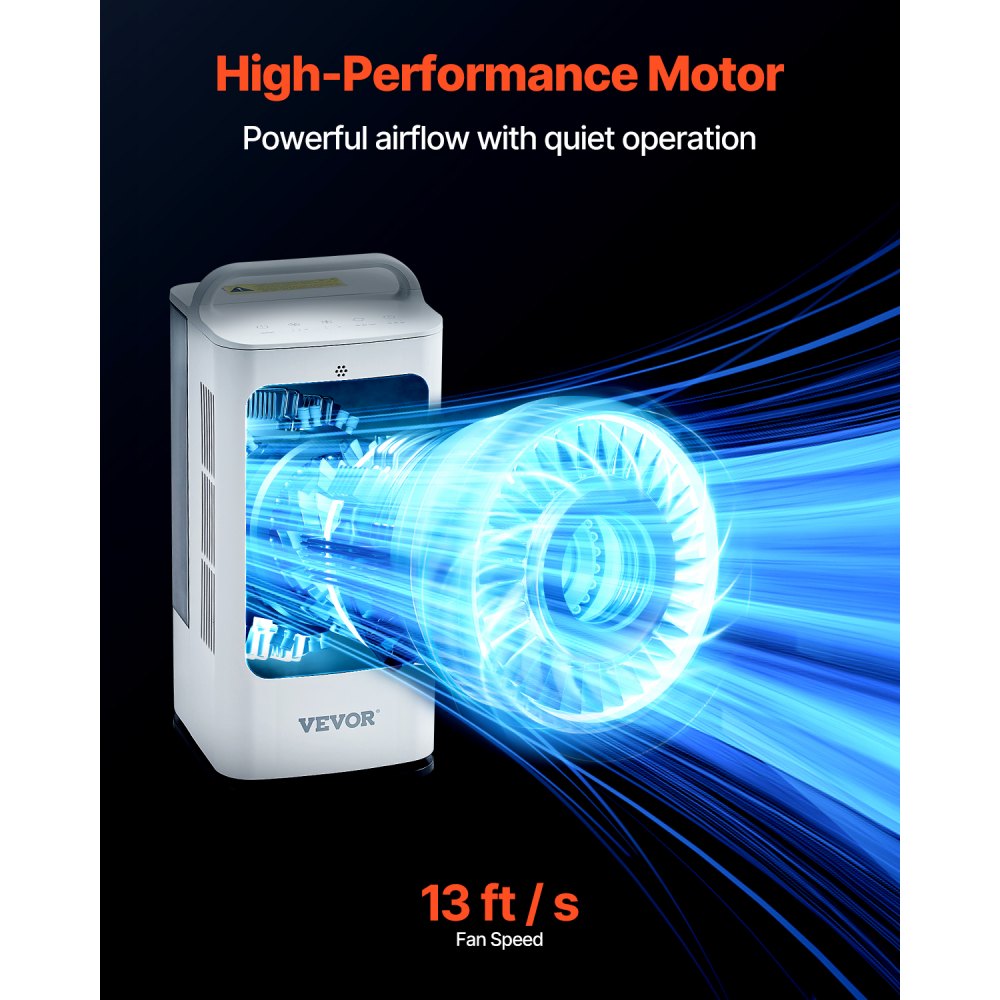 Ψύκτης αέρα 4 σε 1: Αυτός ο φορητός ανεμιστήρας κλιματιστικού συνδυάζει ψύξη, ύγρανση, κυκλοφορία αέρα και ατμοσφαιρικό φωτισμό. Η τεχνολογία υπερηχητικής ομίχλης ψύχει γρήγορα τον αέρα, ενώ ο πολύχρωμος φωτισμός ενισχύει την καλοκαιρινή ατμόσφαιρα. Μεγάλη δεξαμενή νερού: Διαθέτοντας δεξαμενή νερού 1700 ml με πλήρωση από πάνω, αυτός ο φορητός ψύκτης αέρα διευκολύνει την προσθήκη νερού, παγοκύβων ή κρυστάλλων πάγου. Μια γεμάτη δεξαμενή παρέχει ώρες αναζωογονητικής ψύξης, μειώνοντας την ανάγκη για συχνές αναπληρώσεις και εξασφαλίζοντας συνεχή άνεση. Χαμηλός θόρυβος και ανθεκτικότητα: Αυτός ο ψύκτης αέρα με εξάτμιση είναι κατασκευασμένος από υλικά υψηλής ποιότητας με αδιάβροχο, αντιμπλοκαριστικό κινητήρα. Λειτουργεί ομαλά με χαμηλό θόρυβο, παρέχοντας ένα ήσυχο και άνετο περιβάλλον τόσο για εργασία όσο και για ύπνο, ενώ ο ανθεκτικός σχεδιασμός του εξασφαλίζει μεγαλύτερο χρόνο λειτουργίας. Προσαρμοσμένη άνεση: Το μίνι κλιματιστικό μας προσφέρει τρεις ρυθμιζόμενες ταχύτητες ανεμιστήρα, επιτρέποντάς σας να αλλάζετε εύκολα από απαλό αεράκι για ήρεμο διάβασμα σε δυνατό δροσερό αεράκι για γρήγορη ανακούφιση κατά τη διάρκεια των ζεστών ημερών. Χρονοδιακόπτης εξοικονόμησης ενέργειας: Το προσωπικό κλιματιστικό διαθέτει χρονοδιακόπτη 0-7 ωρών για αυτόματη απενεργοποίηση. Αυτός ο προσεγμένος σχεδιασμός είναι ιδανικός για νυχτερινή χρήση ή σύντομες απουσίες, διασφαλίζοντας ότι δεν χρειάζεται να ανησυχείτε μήπως ξεχάσετε να το απενεργοποιήσετε, παρέχοντας άνεση και εξοικονόμηση ενέργειας.