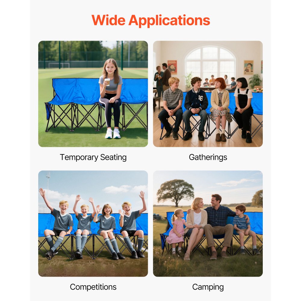 Άνετα καθίσματα: Αυτός ο φορητός, πτυσσόμενος πάγκος 8 ατόμων 129,5x17,7x32,3 ίντσες / 3300x450x820 χιλ. είναι εξαιρετικά φορητός και ελαφρύς, με πλάτη και μεγάλο κάθισμα για άνετη χρήση. Δεν απαιτείται συναρμολόγηση - απλώς ανοίξτε τη συσκευασία και είναι έτοιμο για χρήση. Φιλικός προς το χρήστη σχεδιασμός: Παρέχονται πλαϊνές τσέπες και στις δύο πλευρές του πάγκου ποδοσφαίρου, ιδανικές για την αποθήκευση αντικειμένων όπως μια σανίδα προπονητή, ένα κιτ πρώτων βοηθειών, τηλέφωνο και κλειδιά, προσφέροντας προσεγμένο χώρο αποθήκευσης. Ασφαλές και Σταθερό: Αυτός ο πάγκος ομάδας είναι κατασκευασμένος από ύφασμα Oxford 600D υψηλής ποιότητας, προσφέροντας αντοχή και άνεση. Το πτυσσόμενο κάθισμα διαθέτει σωλήνες σιδήρου Ø16 mm με πάχος τοιχώματος 1 mm, εξασφαλίζοντας ανθεκτικότητα και σταθερή δομή μεταλλικού σκελετού. Εύκολο δίπλωμα και μετακίνηση: Το κάθισμα του ποδοσφαιρικού μας πάγκου μεταφέρεται εύκολα και ο αποτελεσματικός σχεδιασμός αποθήκευσης μεγιστοποιεί την αξιοποίηση του χώρου. Ιδανικό για εξωτερικούς και εσωτερικούς χώρους - αθλητικά γήπεδα, πάρτι, συγκεντρώσεις ή εμπορικούς χώρους - μπορεί να στηθεί σε λίγα μόνο δευτερόλεπτα για άμεση τοποθέτηση. Ευρεία εφαρμογή: Αυτός ο φορητός πτυσσόμενος αθλητικός πάγκος είναι κατάλληλος για όλες τις ηλικίες. Σε αθλητικές εκδηλώσεις όπως το ποδόσφαιρο ή το μπάσκετ, προσφέρει ένα χώρο ανάπαυσης για αθλητές και παίκτες, και είναι επίσης ιδανικός για υπαίθριες δραστηριότητες, ταξίδια και κάμπινγκ.