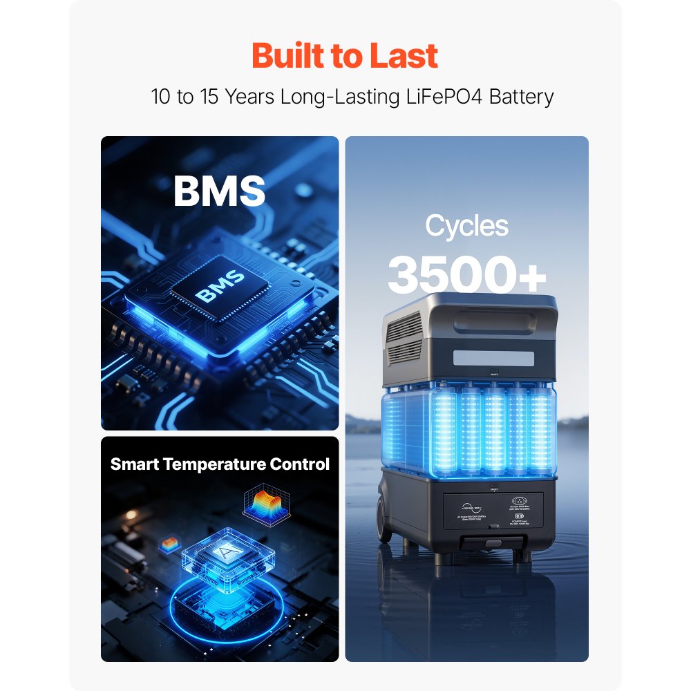Μεγάλη ισχύς για εκτεταμένη χρήση: Απολαύστε αποτελεσματική και αξιόπιστη ισχύ για backup στο σπίτι ή για εξωτερικές περιπέτειες μεγάλων αποστάσεων με αυτόν τον φορητό σταθμό παραγωγής ενέργειας 3000W 3072Wh. Μπορεί να τροφοδοτεί ταυτόχρονα κινητά τηλέφωνα, ψυγεία αυτοκινήτου, ηχεία και κάμερες για περίπου 32 ώρες. Τροφοδοτεί έως και 13 συσκευές: Διαθέτει 3 πρίζες AC (220–240V/20A), 3 θύρες Type-C (20W), 1 θύρα Type-C (100W), 2 θύρες USB QC (18W), 1 πρίζα αυτοκινήτου (12V/10A), 1 θύρα XT60 (12V/25A) και 2 θύρες DC5521 (12V/3A) για την ταυτόχρονη τροφοδοσία πολλών συσκευών. Ευέλικτες επιλογές φόρτισης: Φορτίστε τον σταθμό παραγωγής ενέργειας με 3 βολικούς τρόπους — εξαιρετικά γρήγορη φόρτιση AC (περίπου 2,5 ώρες), φόρτιση αυτοκινήτου ή ηλιακούς συλλέκτες (δεν περιλαμβάνονται). Είτε στο σπίτι είτε σε εξωτερικούς χώρους, η εφεδρική μπαταρία LiFePO4 παρέχει αποτελεσματική αναπλήρωση ενέργειας. Κατασκευασμένο για να διαρκεί: Κατασκευασμένο με μπαταρία LiFePO₄ υψηλής ποιότητας που αντέχει έως και 3500 κύκλους φόρτισης και προσφέρει διάρκεια ζωής 10 έως 15 χρόνια. Προστατεύεται από προηγμένο σύστημα διαχείρισης διακυμάνσεων της μπαταρίας (BMS) για βελτιωμένη ασφάλεια, εξασφαλίζοντας μια πιο αξιόπιστη και μακράς διαρκείας τροφοδοσία ρεύματος. Εύκολη μεταφορά: Εξοπλισμένη με λαβή που αφαιρείται και δύο ρόδες για εύκολη κινητικότητα, αυτή η ηλιακή γεννήτρια είναι ένας αξιόπιστος σύντροφος για εξωτερικούς χώρους που σας επιτρέπει να φορτίζετε συσκευές οποιαδήποτε στιγμή, οπουδήποτε. Ιδανική για εφεδρική χρήση σε σπίτι και κάμπινγκ σε εξωτερικούς χώρους.