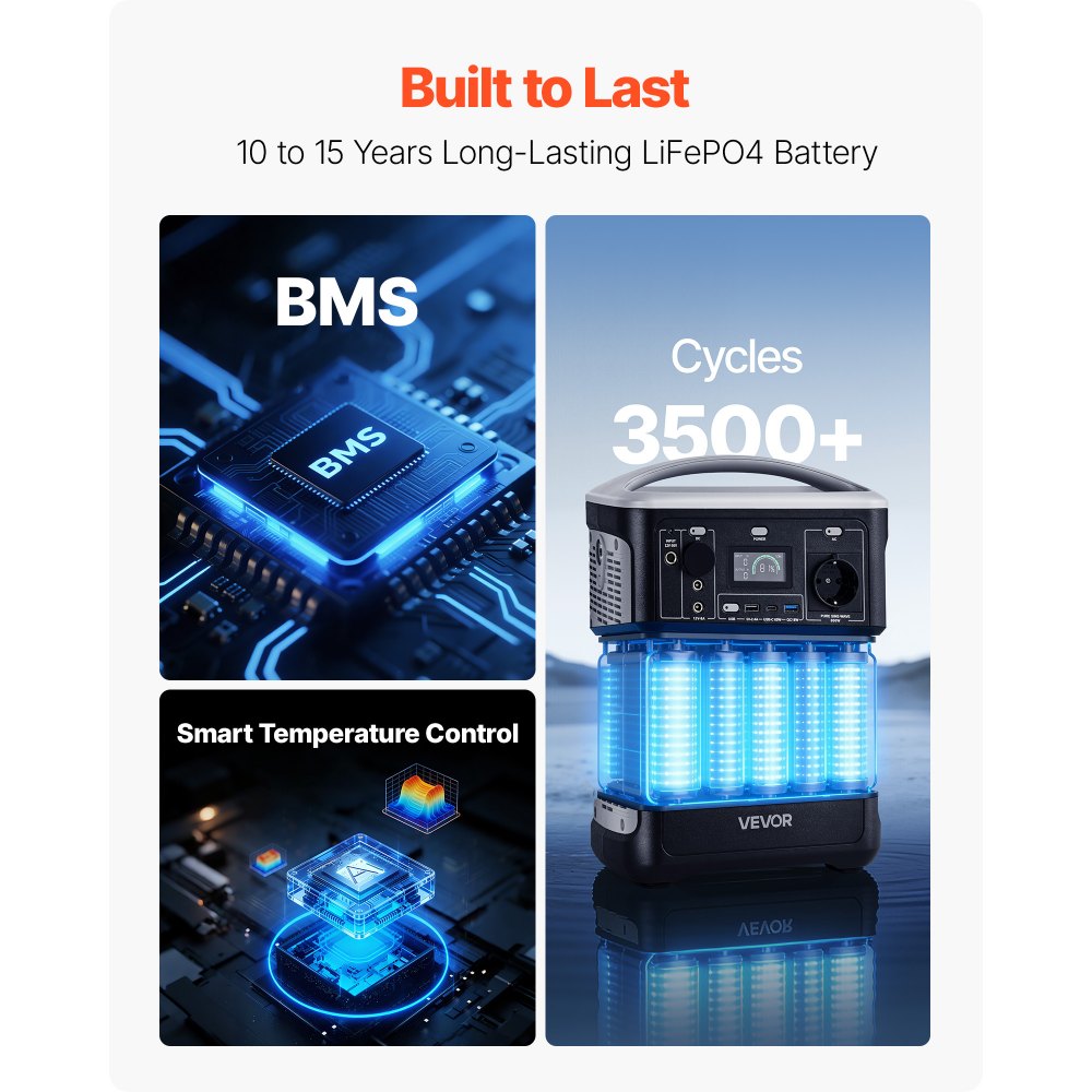 Αξιόπιστη φορητή τροφοδοσία: Απολαύστε σταθερή τροφοδοσία για backup στο σπίτι ή υπαίθριες περιπέτειες με αυτόν τον φορητό σταθμό παραγωγής ενέργειας 600W 493Wh. Μπορεί ταυτόχρονα να τροφοδοτεί κινητά τηλέφωνα, ψυγεία αυτοκινήτου, ηχεία και κάμερες κατά τη διάρκεια της κατασκήνωσης για περίπου 6 ώρες. Τροφοδοτεί έως και 7 συσκευές: Διαθέτει 1 πρίζα AC (PURE SINE-WAVE 600W), 1 θύρα Type-C (65W), 1 θύρα USB QC (18W), 1 θύρα USB (5V/2.4A), 1 πρίζα αυτοκινήτου (12V/8A) και 2 εξόδους DC (12V/8A) για την ταυτόχρονη τροφοδοσία πολλαπλών συσκευών. Ευέλικτες επιλογές φόρτισης: Φορτίστε τον σταθμό παραγωγής ενέργειας με 3 βολικούς τρόπους — φόρτιση AC (περίπου 7,5 ώρες), φορτιστή αυτοκινήτου (περίπου 9 ώρες) ή ηλιακούς συλλέκτες (δεν περιλαμβάνονται). Είτε στο σπίτι είτε σε εξωτερικούς χώρους, η εφεδρική μπαταρία LiFePO4 παρέχει αποτελεσματική αναπλήρωση ενέργειας. Κατασκευασμένο για να διαρκεί: Κατασκευασμένο με μπαταρία LiFePO₄ υψηλής ποιότητας που αντέχει έως και 3500 κύκλους φόρτισης και προσφέρει διάρκεια ζωής 10 έως 15 χρόνια. Προστατεύεται από προηγμένο σύστημα διαχείρισης διακυμάνσεων της μπαταρίας (BMS) για βελτιωμένη ασφάλεια, εξασφαλίζοντας μια πιο αξιόπιστη και μακράς διαρκείας τροφοδοσία ρεύματος. Ελαφρύ και φορητό: Συμπαγές και εύκολο στη μεταφορά, αυτό το ηλιακό σύστημα παραγωγής ενέργειας είναι ένας αξιόπιστος σύντροφος για εξωτερικούς χώρους που σας επιτρέπει να φορτίζετε συσκευές οποιαδήποτε στιγμή, οπουδήποτε. Ιδανικό για εφεδρική χρήση έκτακτης ανάγκης στο σπίτι και κάμπινγκ σε εξωτερικούς χώρους.