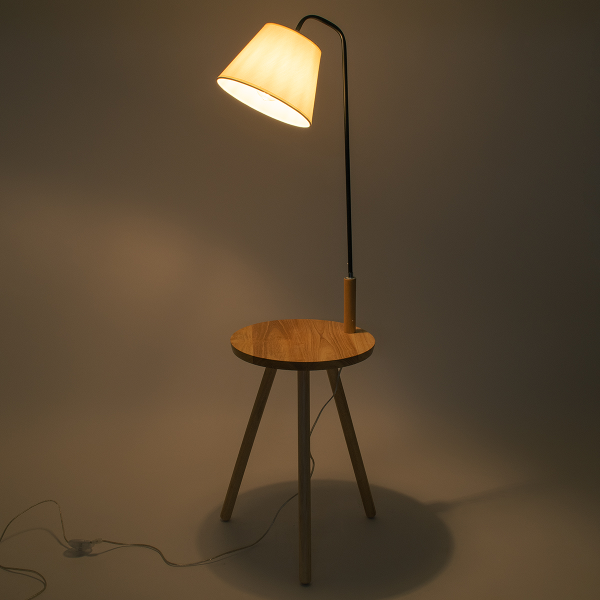 GloboStar® TIFFANY 01206 Μοντέρνο Επιδαπέδιο Φωτιστικό Μονόφωτο 1 x E27 IP20 Μπεζ Ξύλο, Λευκό Ύφασμα με Μαύρο Μέταλλο - Μ28 x Π28 x Υ140cm