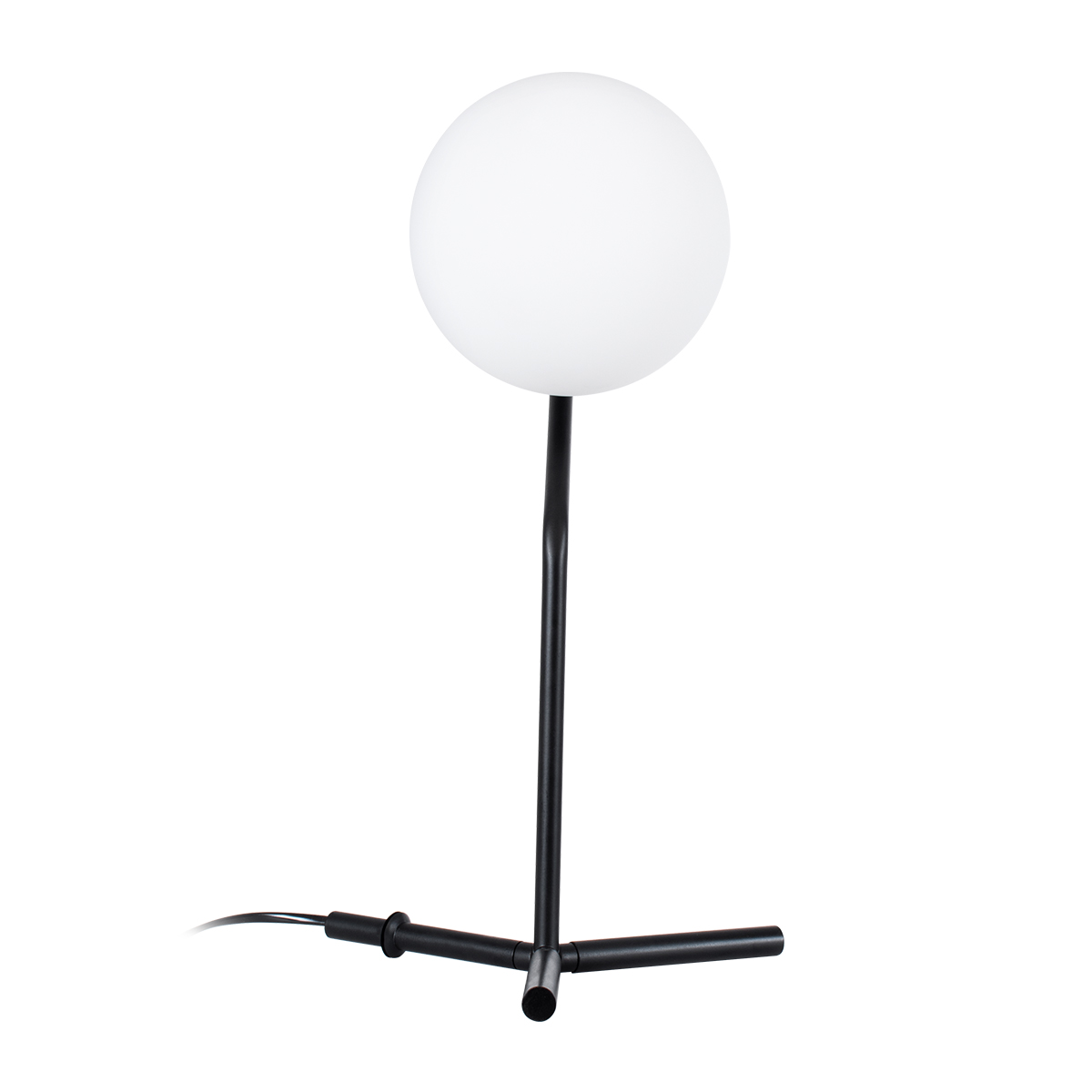 GloboStar® ELFIS 01100 Μοντέρνο Επιτραπέζιο Φωτιστικό Πορτατίφ Μονόφωτο 1 x E27 IP20 Μαύρο Μέταλλο με Λευκό Γυαλί - Μ22 x Π27 x Υ41cm