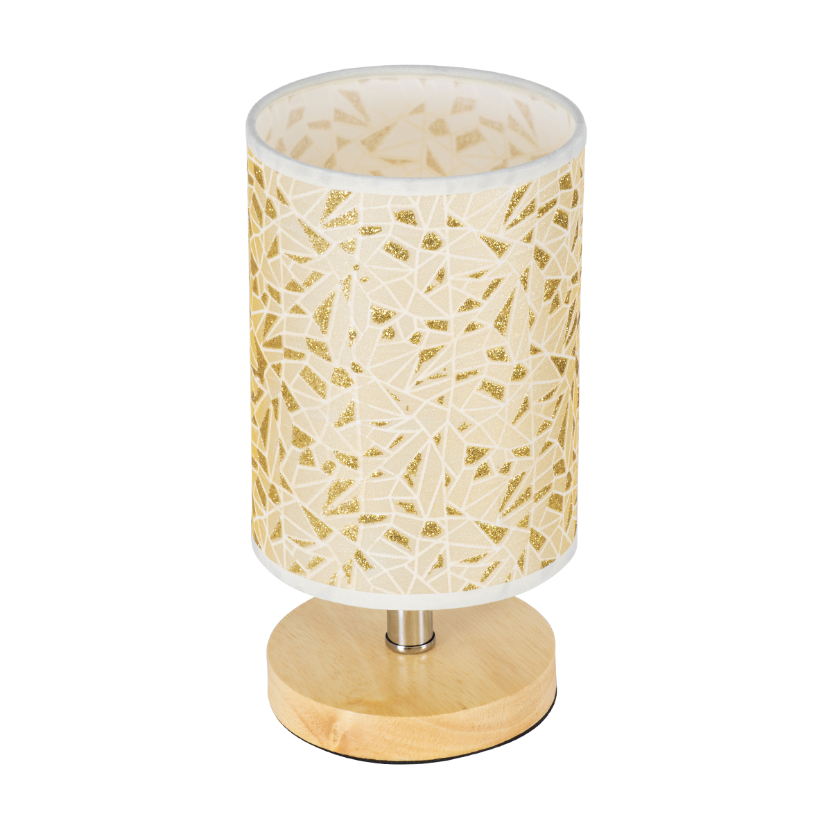 GloboStar® MOSAIC 01262 Κλασικό Επιτραπέζιο Φωτιστικό Πορτατίφ Μονόφωτο 1 x E27 IP20 Μπεζ Ξύλο με Μπεζ & Χρυσό Ύφασμα - Μ14 x Π14 x Υ26cm