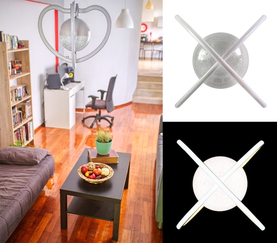 Μοναδικού design φωτιστικό σώμα από την Modern Ceiling. Εντυπωσιάστε ευχάριστα τον εαυτό σας και τους προσκεκλημένους σας επιλέγοντας μέσα από την σειρά Modern Ceiling το επόμενο φωτιστικό που θα συντροφεύσει τις στιγμές σας. Καλόγουστοι σχεδιασμοί σε μοντέρνα γραμμή για προσγειωμένα και μη δωμάτια προσδίδουν την προσωπική σφραγίδα του γούστου σας. Ποικίλα σχέδια με πολύπλευρες απόψεις που με το πάτημα του διακόπτη σε ηρεμούν, με το πάτημα του διακόπτη σου δίνουν ένταση και που με κάποιο επόμενο πάτημα του διακόπτη σου δίνουν άλλοτε έμπνευση και άλλοτε συναίσθημα. Διαθέτει ενσωματωμένα LED chips υψηλής φωτιστικής ροής και ενσωματώνει εσωτερικά και τους οδηγούς τροφοδοσίας τους. Δεν θα χρειαστεί να σπαταλήσετε ούτε χρόνο, ούτε χρήμα για κακόγουστου σχεδιασμού βιδωτές λάμπες. Ένα home gadget με υπογραφή σχεδιαστών και τεχνολογία εφάμιλλη Ιαπωνικών οίκων. Το προιόν είναι κρεμαστό φωτιστικό σώμα με ενσωματωμένα LED στοιχεία. Για την εγκατάσταση του αρκεί ο ηλεκτρολόγος εγκαταστάτης να αλλάξει το παλιό με το καινούριο χωρίς καμία απολύτως αλλαγή στα ηλεκτρικά του χώρου. Η σύνδεση γίνεται με την ενσωματωμένη διπολική κλέμμα. Το προιόν παραδίδετε με ενσωματωμένο καλώδιο πρίζας πάνω στην κλέμα για τον δειγματισμό και έλεγχο πριν την εγκατάσταση. Βεβαιωθείτε ότι έγινε δοκιμή και είστε ευχαριστημένοι πριν το κρεμάσετε. Μην κρεμάτε το προιόν από τη διπολική κλέμα, βιδώστε το στον τοίχο σε εγκαταστάσεις χωρίς γύψινο διακοσμητικό ή πατεντάρετε με το σύρμα ή/και το χάλκινο διπολικό αγωγό της εγκατάστασης στην οροφή σε εγκαταστάσεις με γύψινο. Μην αλλάζετε τις εσωτερικές συνδέσεις του προιόντος. Το δοκιμαστικό ενσωματωμένο καλώδιο ενδέχετε να περιλαμβάνει διακόπτη τύπου dimmer, η λειτουργία αυτή δεν παρέχετε. Σε εγκαταστάσεις με διπλό διακόπτη τοίχου χρησιμοποιήστε το ένα κύκλωμα και αφήστε ανενεργό τον δεύτερο διακόπτη για μελλοντική χρήση.