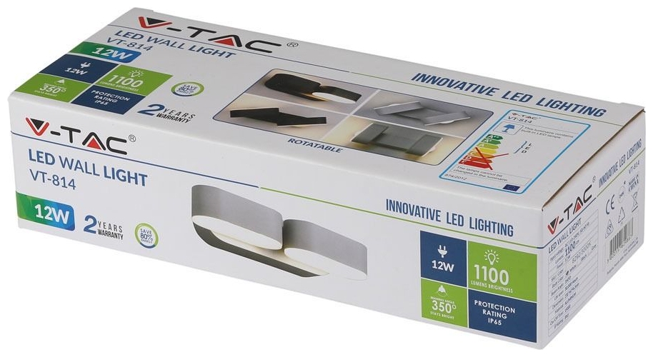 Φωτιστικό Τοίχου Διπλό Απλίκα V-TAC Κινητή Λευκή 12W IP65 Θερμό Λευκό 8292