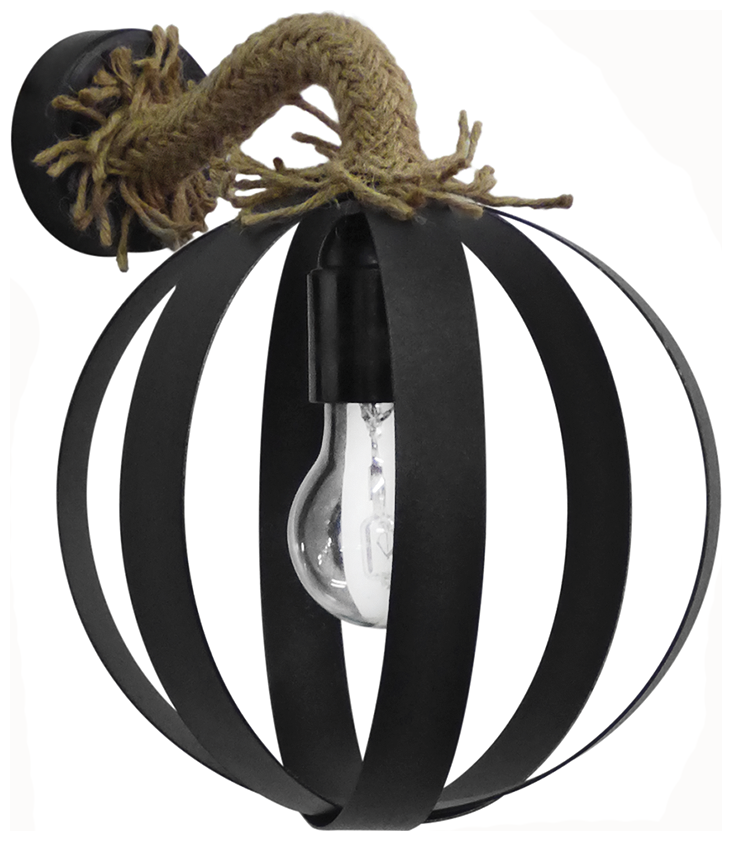 Απλίκα με φυσικό σχοινί και μεταλλική μπάλα μαύρη LAMA/AP ROPE UT-BL Τεχνικά χαρακτηριστικά Σχοινί φυσικό & μεταλλικό πλέγμα Χρώμα φυσικό - μαύρο Η23 cm x 21cm E/27 LED Ελληνικό Προϊόν