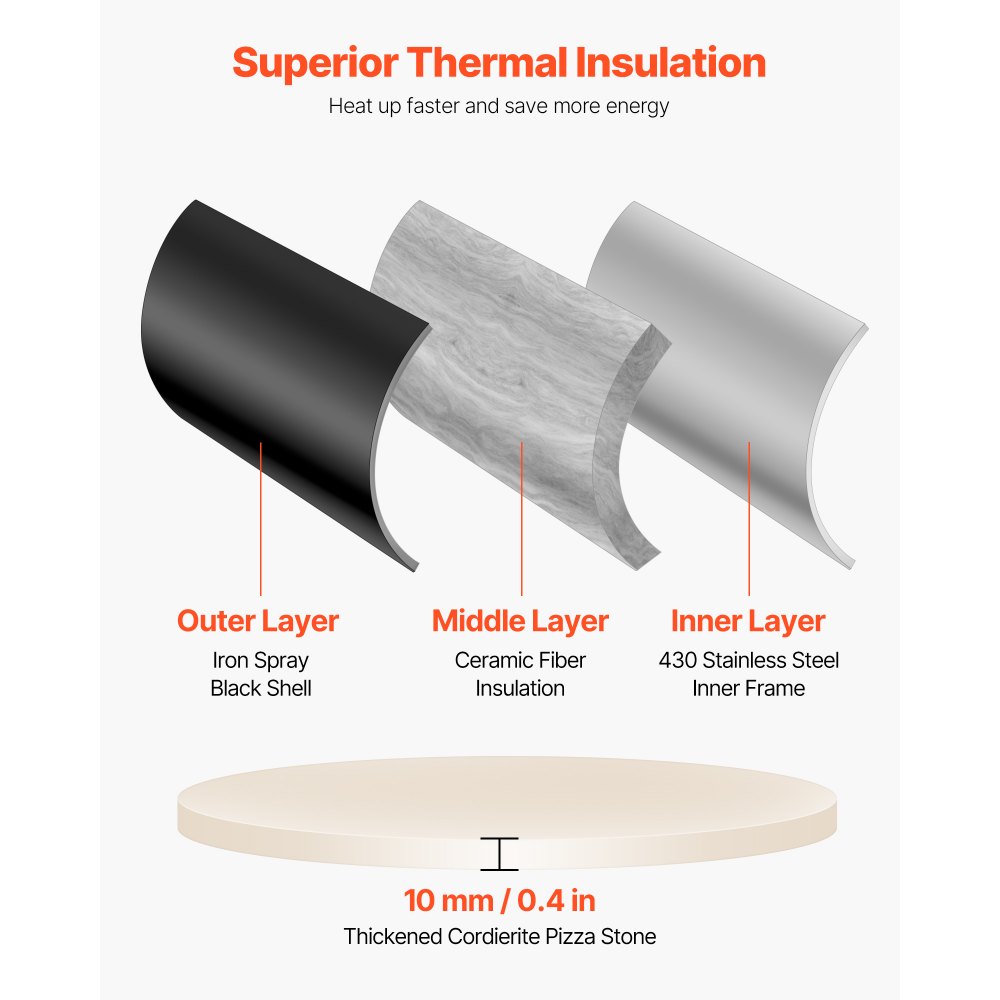 Επιλέξτε πίτσα ναπολιτάνικης κουζίνας: Ο φούρνος πίτσας VEVOR σε μορφή pellet δημιουργεί μια τραγανή ζύμη με την υπέροχη καπνιστή γεύση για την οποία είναι γνωστοί οι ξυλόφουρνοι. Μετατρέψτε την αυλή σας σε μια γκουρμέ πιτσαρία και απολαύστε τη δημιουργία γαστρονομικών αριστουργημάτων με την οικογένειά σας. Έτοιμο σε λίγα λεπτά: Προθερμαίνεται στους 200°C σε μόλις 15 λεπτά, ψήνοντας πίτσες σε 90 δευτερόλεπτα. Ο ενσωματωμένος ηλεκτρικός περιστροφικός μηχανισμός εξασφαλίζει ομοιόμορφο μαγείρεμα χωρίς κάψιμο. Με μέγιστη θερμοκρασία 1000°C, μαγειρεύει τα πάντα, από τραγανές πίτσες μέχρι λαχανικά, μπριζόλες και φτερούγες κοτόπουλου. Απολαύστε γρήγορο και ευέλικτο μαγείρεμα σε εξωτερικούς χώρους. Ανθεκτική κατασκευή: Ο φούρνος πίτσας VEVOR αντέχει στις εξωτερικές συνθήκες και τη συχνή χρήση. Υιοθετεί σχεδιασμό 3 στρώσεων, που προάγει την αποτελεσματική κυκλοφορία θερμότητας. Με μαύρο περίβλημα με σπρέι σιδήρου και παχύ μονωτικό βαμβάκι, εξασφαλίζει ανθεκτικότητα και εξαιρετική συγκράτηση θερμότητας. Εύκολη λειτουργία: Εξοπλισμένο με ενσωματωμένο θερμόμετρο για έλεγχο της θερμοκρασίας σε πραγματικό χρόνο. Υποστηρίζει ευέλικτα καύσιμα όπως ξύλινα pellets, ροκανίδια και κάρβουνα, με χοάνη μεγάλης χωρητικότητας για παρατεταμένο μαγείρεμα. Συμπαγής και φορητός: Εξοπλισμένος με τσάντα μεταφοράς, ο φορητός φούρνος πίτσας μας είναι ελαφρύς και ιδανικός για χρήση σε εξωτερικούς χώρους. Μεταφέρεται και τοποθετείται εύκολα όπου κι αν πάτε, καθιστώντας τον ιδανικό για κάμπινγκ, πικνίκ και άλλες υπαίθριες περιπέτειες.