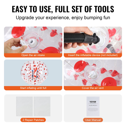 Υλικό υψηλής ποιότητας, Ατελείωτη Διασκέδαση: Βουτήξτε στην ατελείωτη διασκέδαση με τη φουσκωτή μπάλα προφυλακτήρα VEVOR! Κατασκευασμένες από PVC με πάχος 0,8 mm, αντιεκρηκτικό, αυτές οι μπάλες σούμο είναι ανθεκτικές, ασφαλείς, αδιάβροχες και κατασκευασμένες για να αποτρέπουν διαρροές αέρα. Η εξαιρετική αντοχή στο σχίσιμο, το προηγμένο σύστημα βαλβίδων και η σφιχτή στεγανοποίηση υπόσχονται ψυχαγωγία μεγάλης διάρκειας.