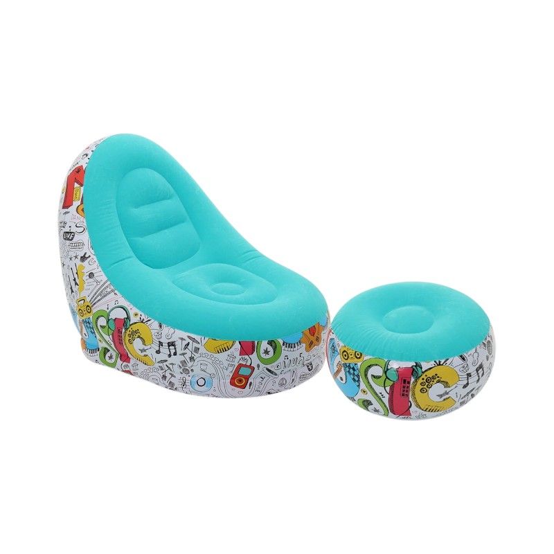 Φουσκωτή πολυθρόνα σετ με φουσκωτό υποπόδιο, κατασκευασμένη από αδιάβροχο υλικό υψηλής ανθεκτικότητας με μαλακή, βελουτέ επίστρωση.