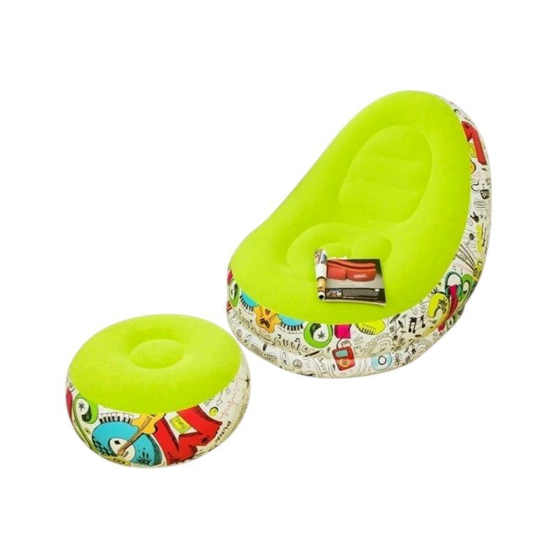 Φουσκωτή πολυθρόνα σετ με φουσκωτό υποπόδιο, κατασκευασμένη από αδιάβροχο υλικό υψηλής ανθεκτικότητας με μαλακή, βελουτέ επίστρωση.