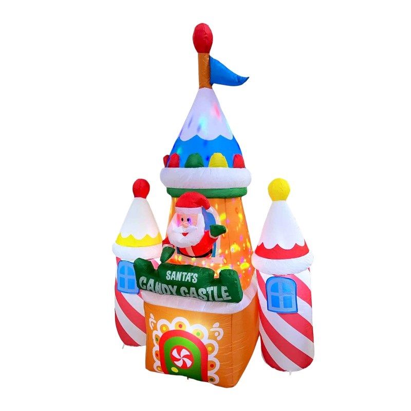 Φουσκωτό, διακοσμητικό Χριστουγεννιάτικο Κάστρο Άγιου Βασίλη με εσωτερικό φωτισμό LED.