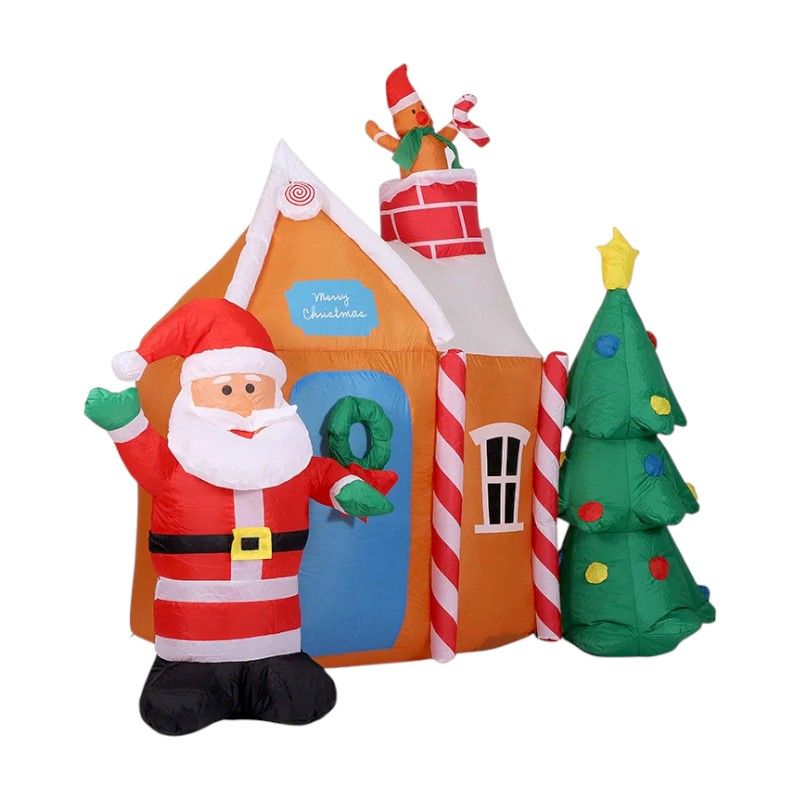 Φουσκωτό, διακοσμητικό Χριστουγεννιάτικο Σπιτάκι Άγιου Βασίλη με εσωτερικό φωτισμό LED.