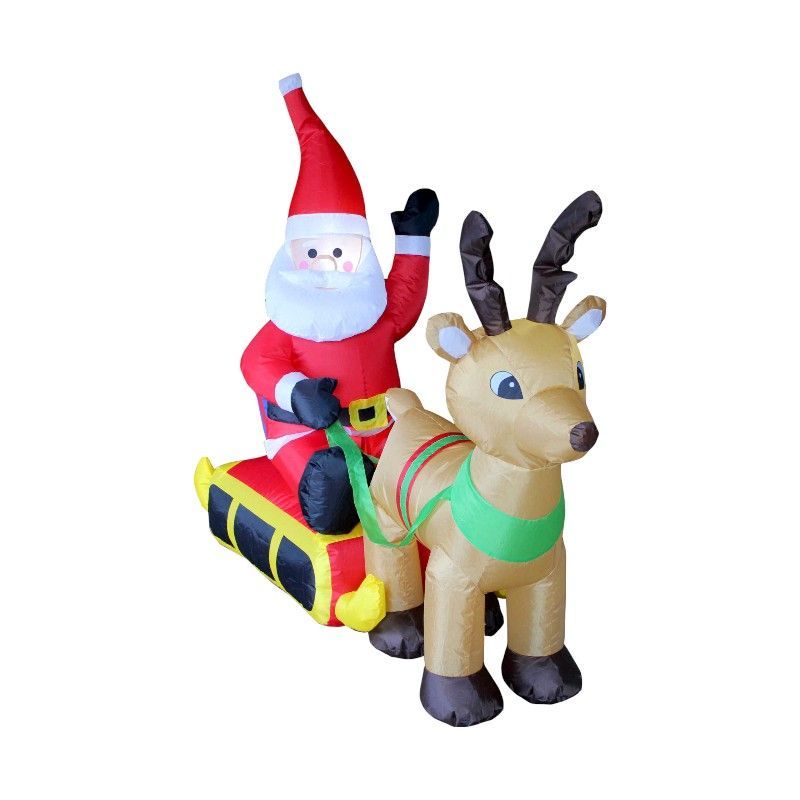 Φουσκωτός διακοσμητικός Άγιος Βασίλης με έλκηθρο & ταράνδους με εσωτερικό φωτισμό LED.