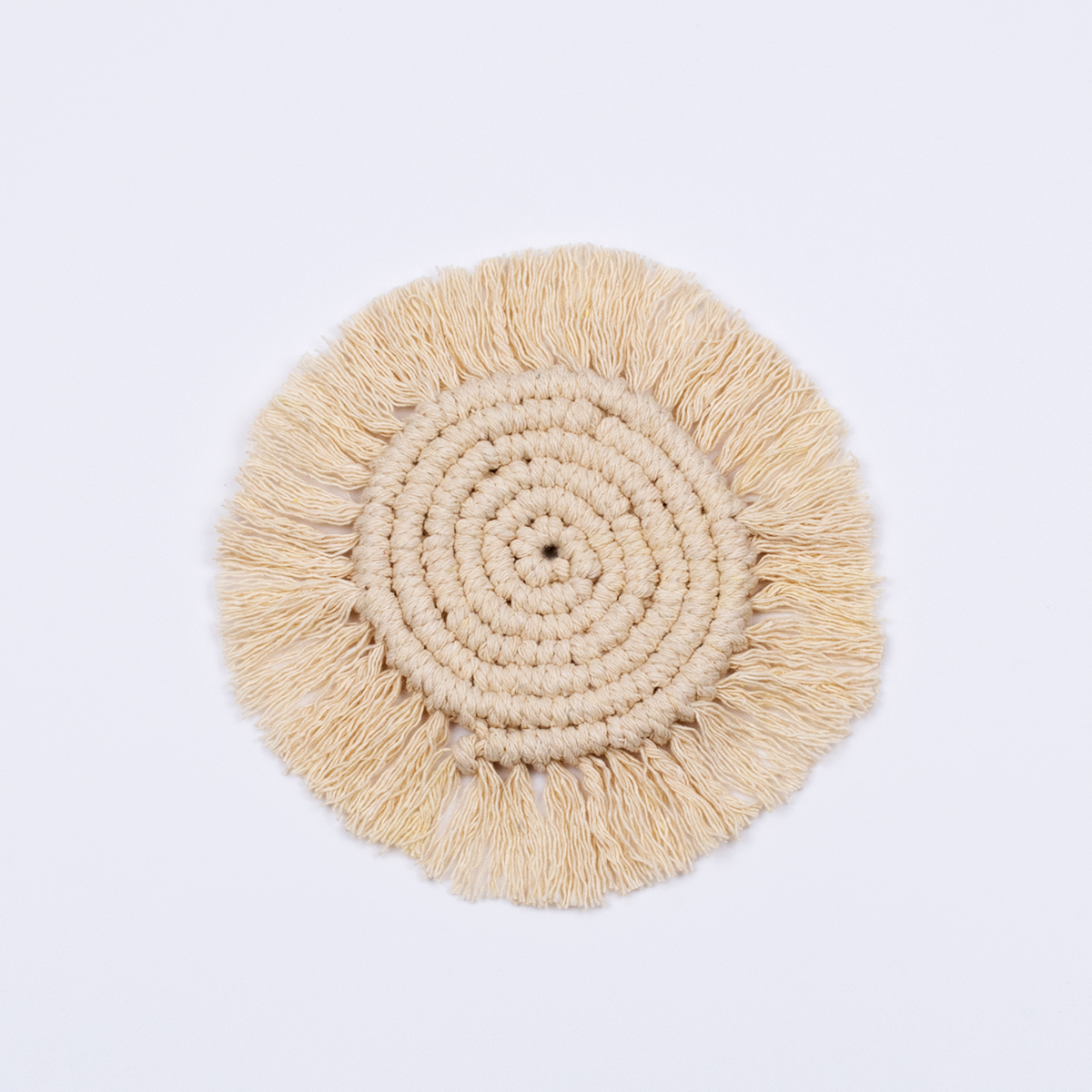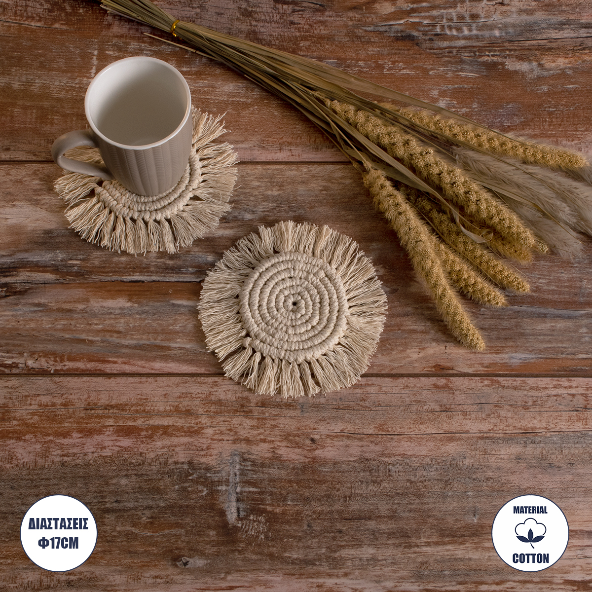 GloboStar® 35300 Μακραμέ Σουβέρ Χειροποίητο Μπεζ Φ17cm