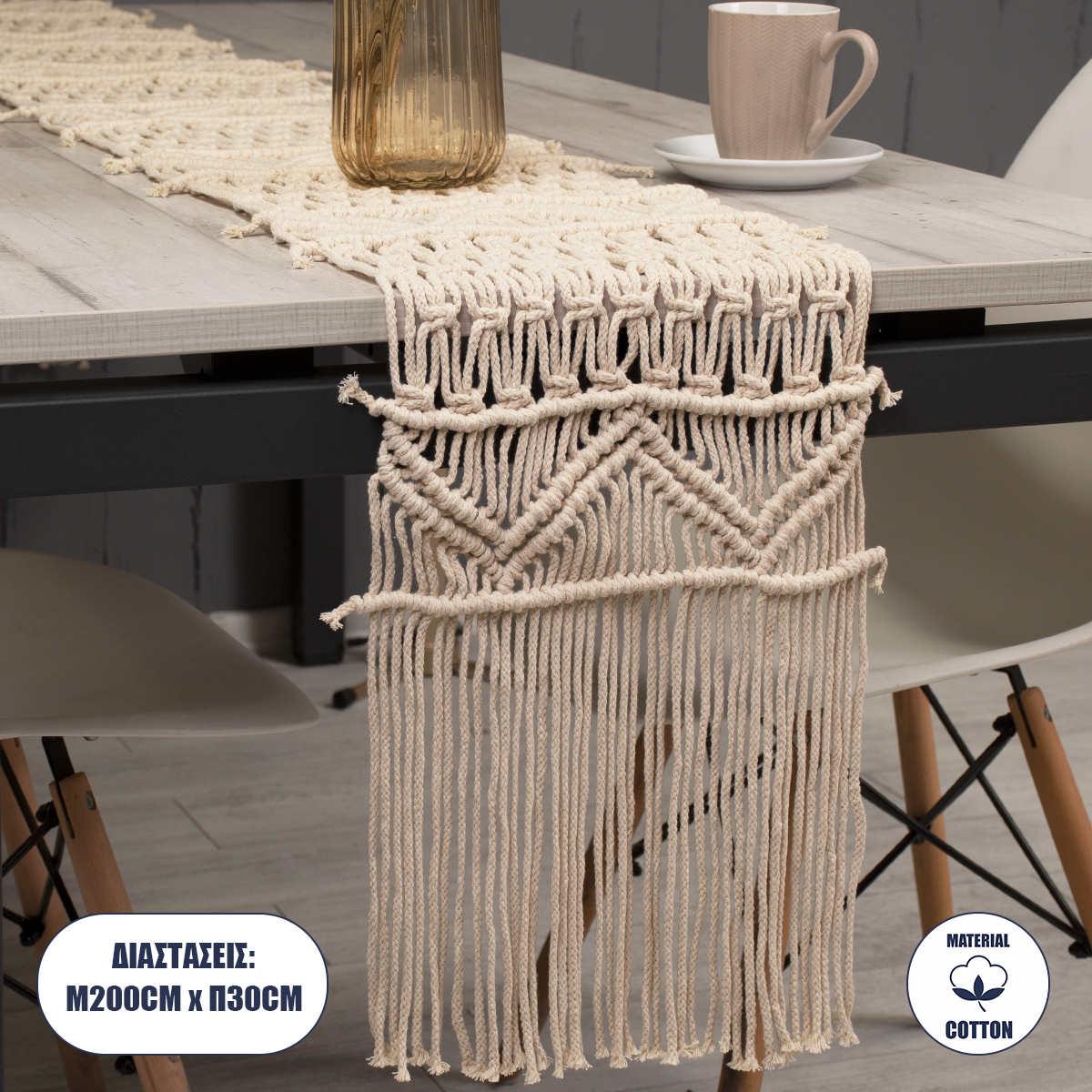 GloboStar® 35400 Μακραμέ Ράνερ Χειροποίητο Μπεζ Μ200 x Π30cm