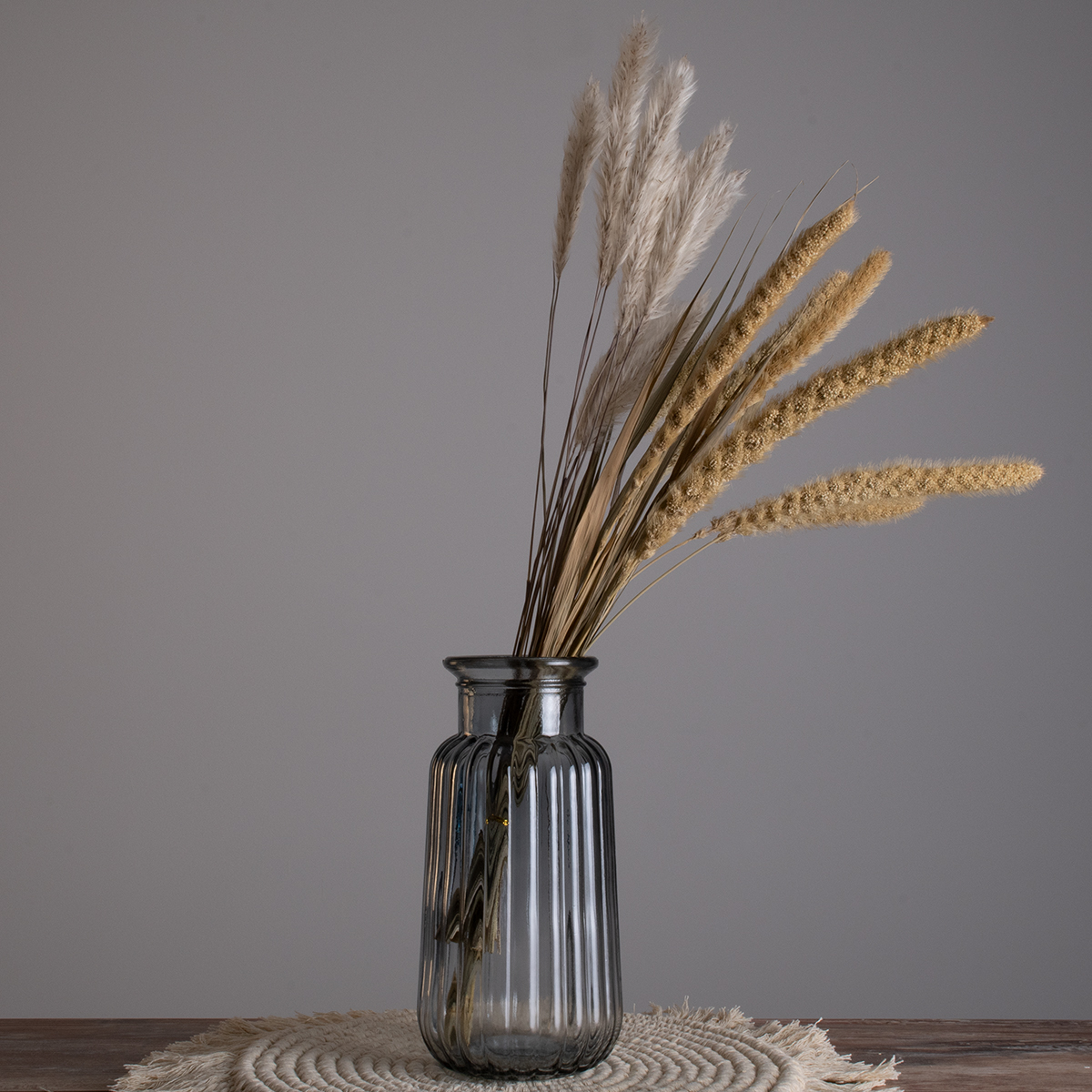 GloboStar® LAYLA 35601 Διακοσμητικό Βάζο Γυάλινο Γκρι Φ11 x Υ22cm