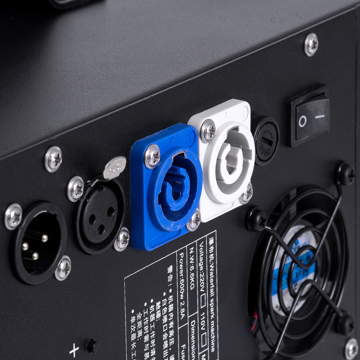 GloboStar® 51131 SIRENS Επαγγελματική Κρεμαστή Μηχανή Cold Sparkle Machine - Fountain Εφέ με Άκαυστες Σπίθες 600W AC 220V-240V DMX512 Display on Body & Ασύρματο Χειριστήριο - Μαύρο - L20 x W18 x H34cm