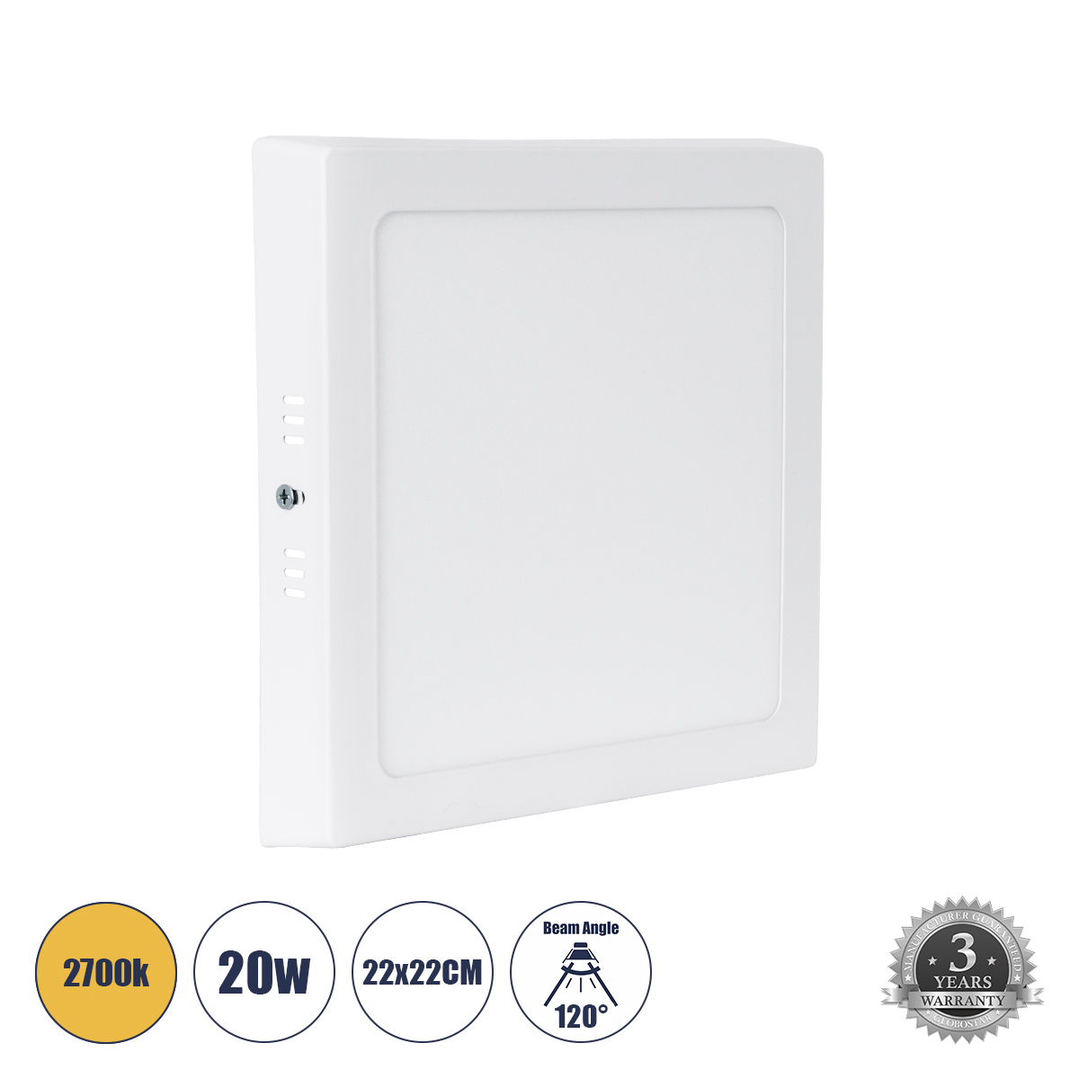 GLOBOSTAR® PANELO 60205 Panel Οροφής LED 20W 1800lm 120° AC 220-240V IP20 Θερμό Λευκό 2700K - Lumileds SMD Chip & TÜV SÜD Driver - Λευκό Γαλακτερό - Μ22 x Π22 x Υ3cm / Q20 x 20cm - 3 Χρόνια Εγγύηση