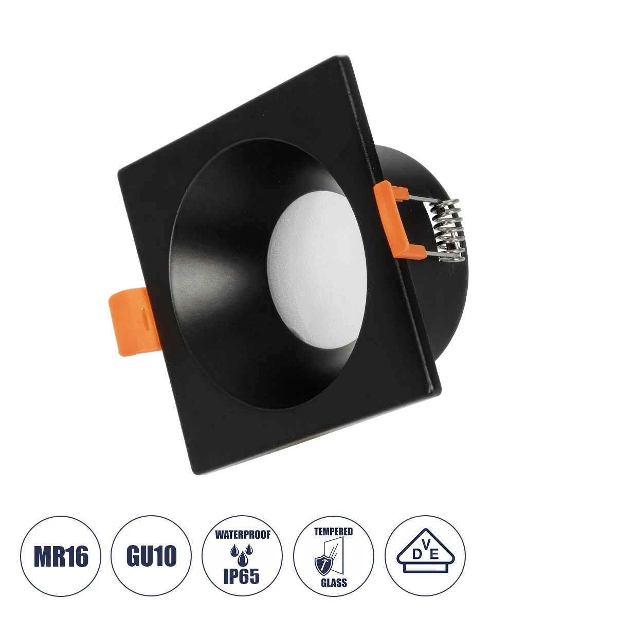 GLOBOSTAR® EPSILON 60895 Χωνευτή Βάση για Σποτ MR16 με Ντουί GU10/GU5.3 Αδιάβροχο IP65 - Μαύρο & Λευκό - Μ8.5 x Π8.5 x Υ4.4cm / Q7.5 x 7.5cm