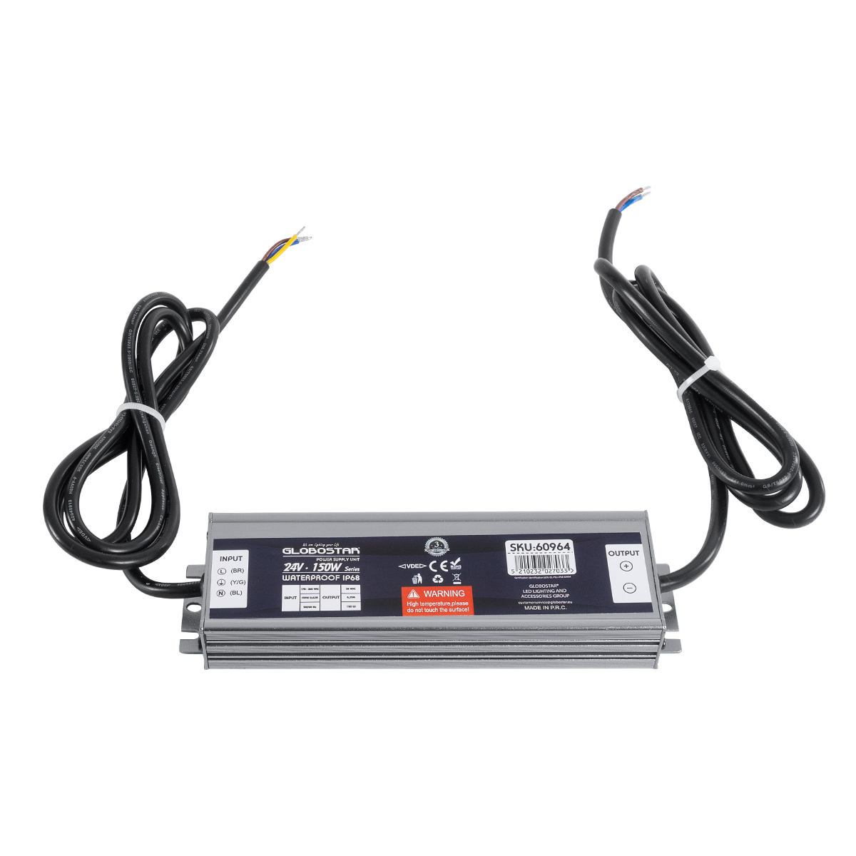 GLOBOSTAR® LUMISPLASH 60964 Τροφοδοτικό/Μετασχηματιστής Class II SELV 150W 6.25A DC 24V Αδιάβροχο IP68 - AC 220-240V σε DC 24V - Μ20 x Π5.5 x Υ2.5cm - 3 Χρόνια Εγγύηση