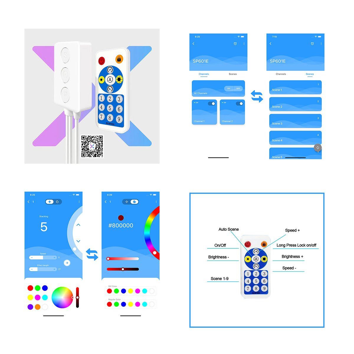 GloboStar® 70038 Ασύρματος LED Dream-Color Magic Digital RGBW Dual Controller Bluetooth με Χειριστήριο RF 16 Keys για LED Digital RGBW Προϊόντα 5v - 12v - 24v 2048 IC