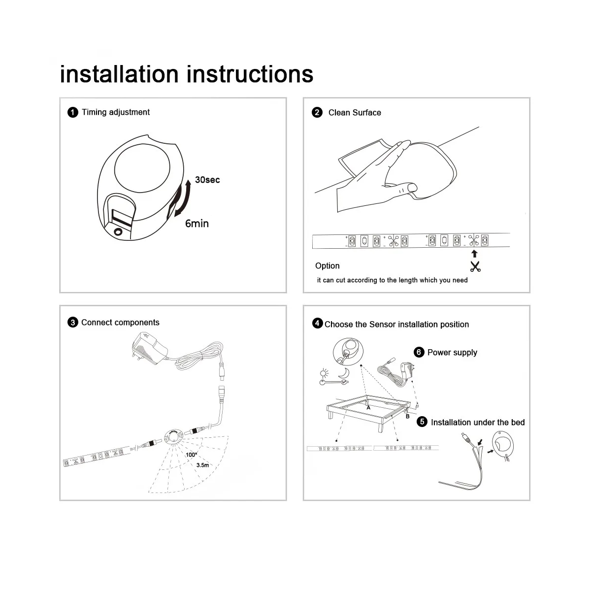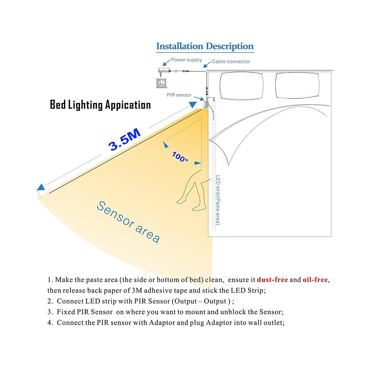 GloboStar® 70401 ΣΕΤ Ταινία LED Κρυφού Φωτισμού Κρεβατιού 2 x 1.2m 6W 600lm 2835 SMD 120° Αδιάβροχη IP65 με Τροφοδοτικό & 2 x Ανιχνευτή Κίνησης 360° Φυσικό Λευκό 4000k