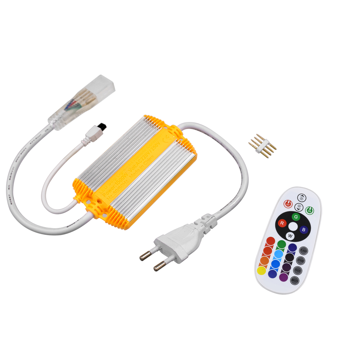 GloboStar® 70521 RGB Controller με Ασύρματο Χειριστήριο IR - Μεταλλάκτης Τροφοδοσίας AC/DC 230V IP68 Slim Ταινίας Μονής Σειράς LED RGB 4 Pin Max 1500W - Έως 100 Μέτρα