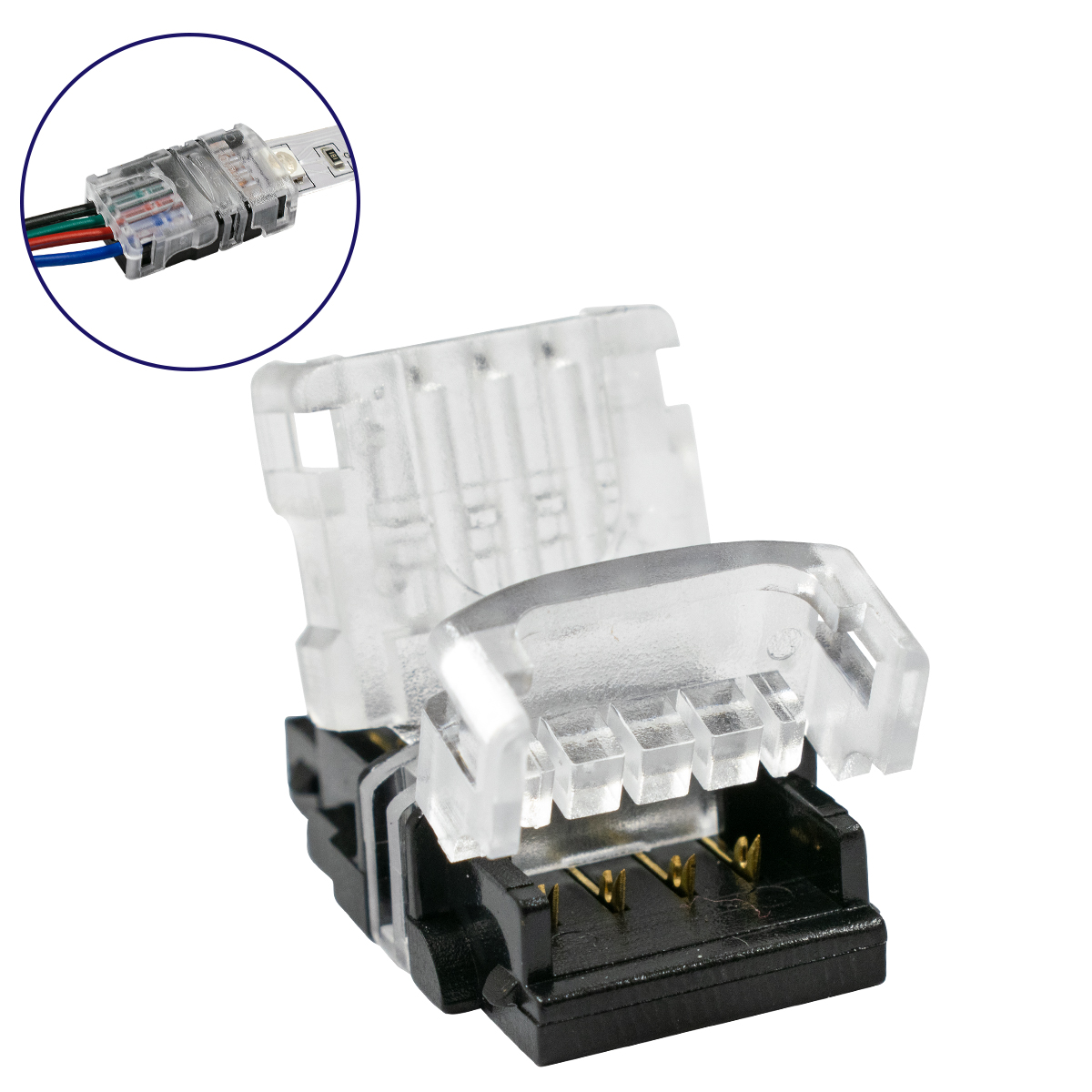 GloboStar® 70722 Ταχυσύνδεσμος Ένωσης IP20 - Strip To Cable Connector για Ένωση 1 x RGB Ταινίας LED Πλάτους 10mm με 1 x Καλώδιο Τροφοδοσίας