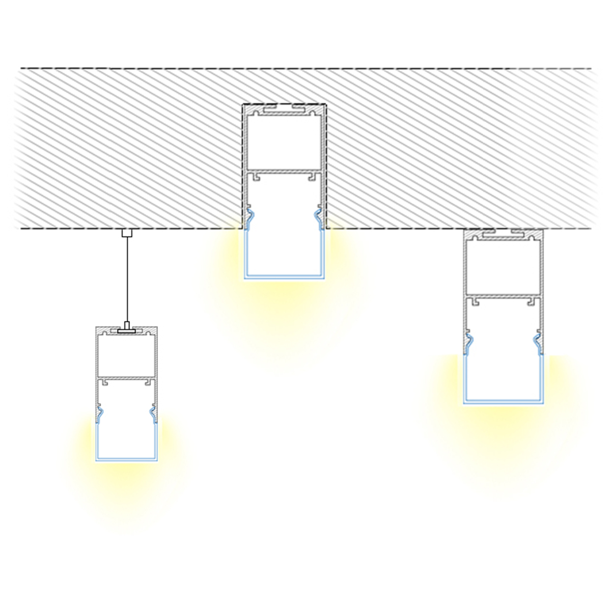 GloboStar® SURFACEPENDANT-PROFILE 70830-3M Προφίλ Αλουμινίου - Βάση & Ψύκτρα Ταινίας LED με Λευκό Γαλακτερό Κάλυμμα - Επιφανειακή & Κρεμαστή Χρήση - Πατητό Κάλυμμα - Ασημί - 3 Μέτρα - Μ300 x Π3.5 x Υ7.4cm