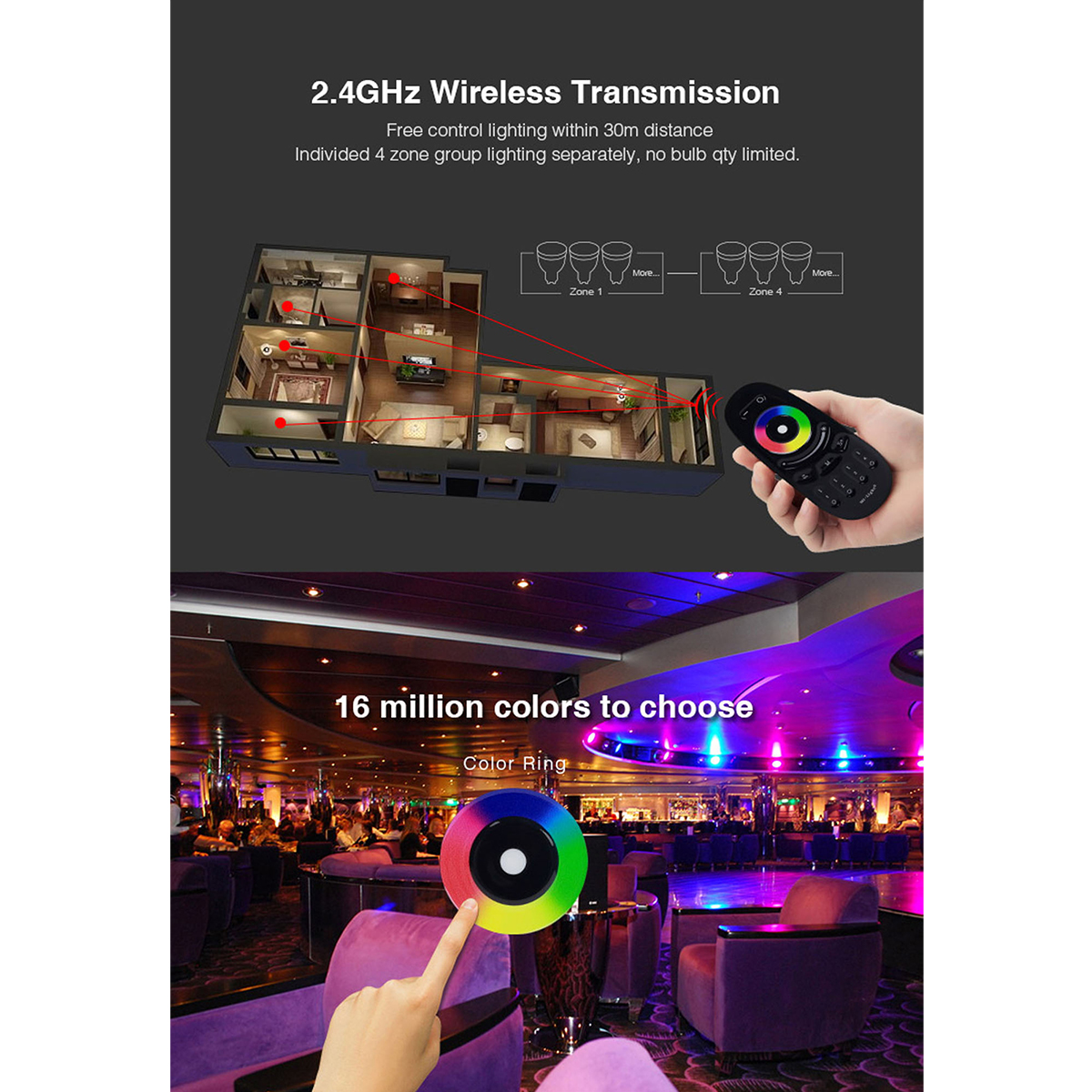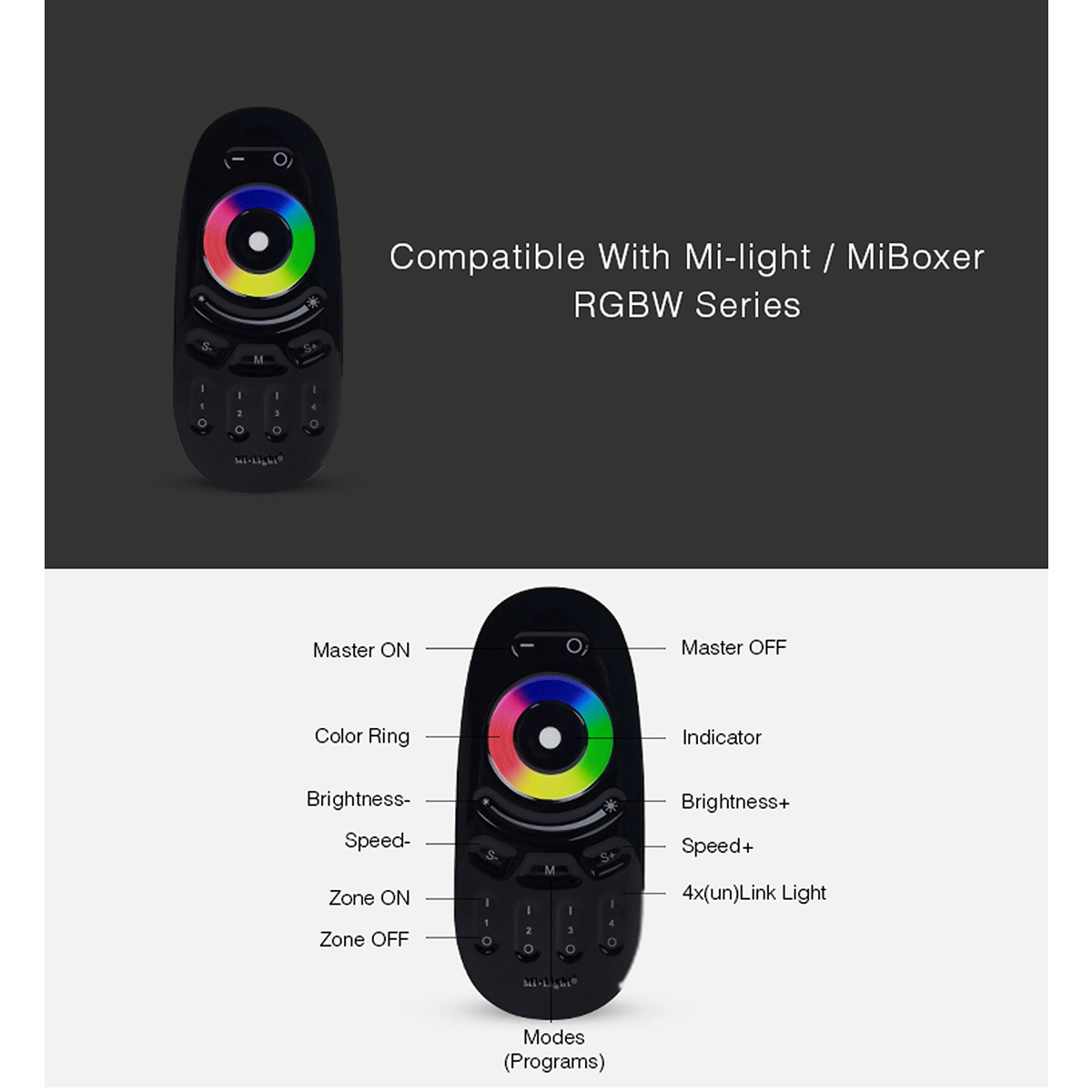 GloboStar® 71410 FUT096-B Mi-Light Ασύρματο Χειριστήριο Αφής RF 2.4Ghz 4 Group για όλα τα RGBW Mi-BOXER Controller DC 3V 2 x AAA - IP20 Μαύρο Μ12 x Π5.4 x Υ2cm - 5 Years Warranty