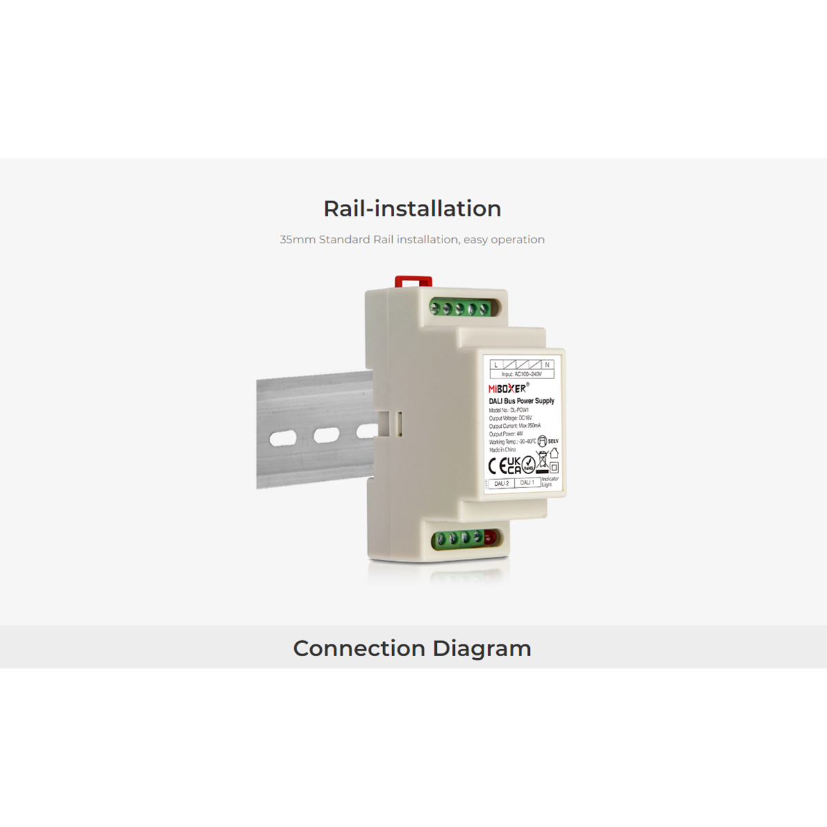 GLOBOSTAR® MiBOXER-DL-POW1 71420 DC DALI BUS Τροφοδοτικό/Μετασχηματιστής SELV Ράγας με 2 x 125mA 2W Κανάλια AC 220-240V σε DC 16V 250mA 4W Max IP20 - DALI BUS - Μ9 x Π3.4 x Υ6cm - 5 Χρόνια Εγγύηση