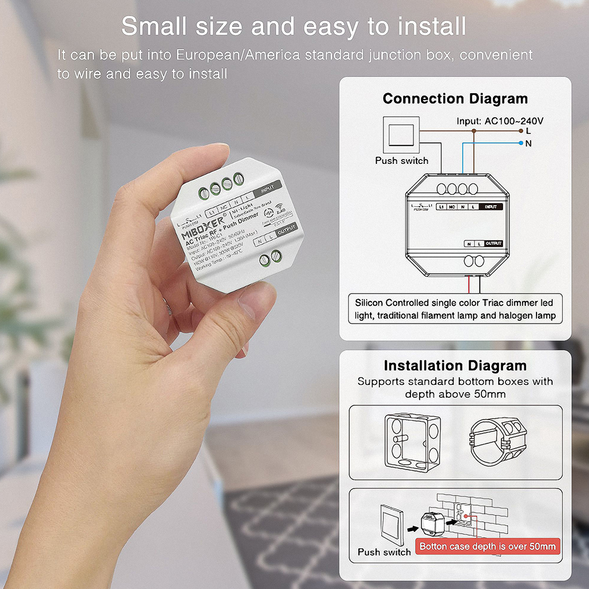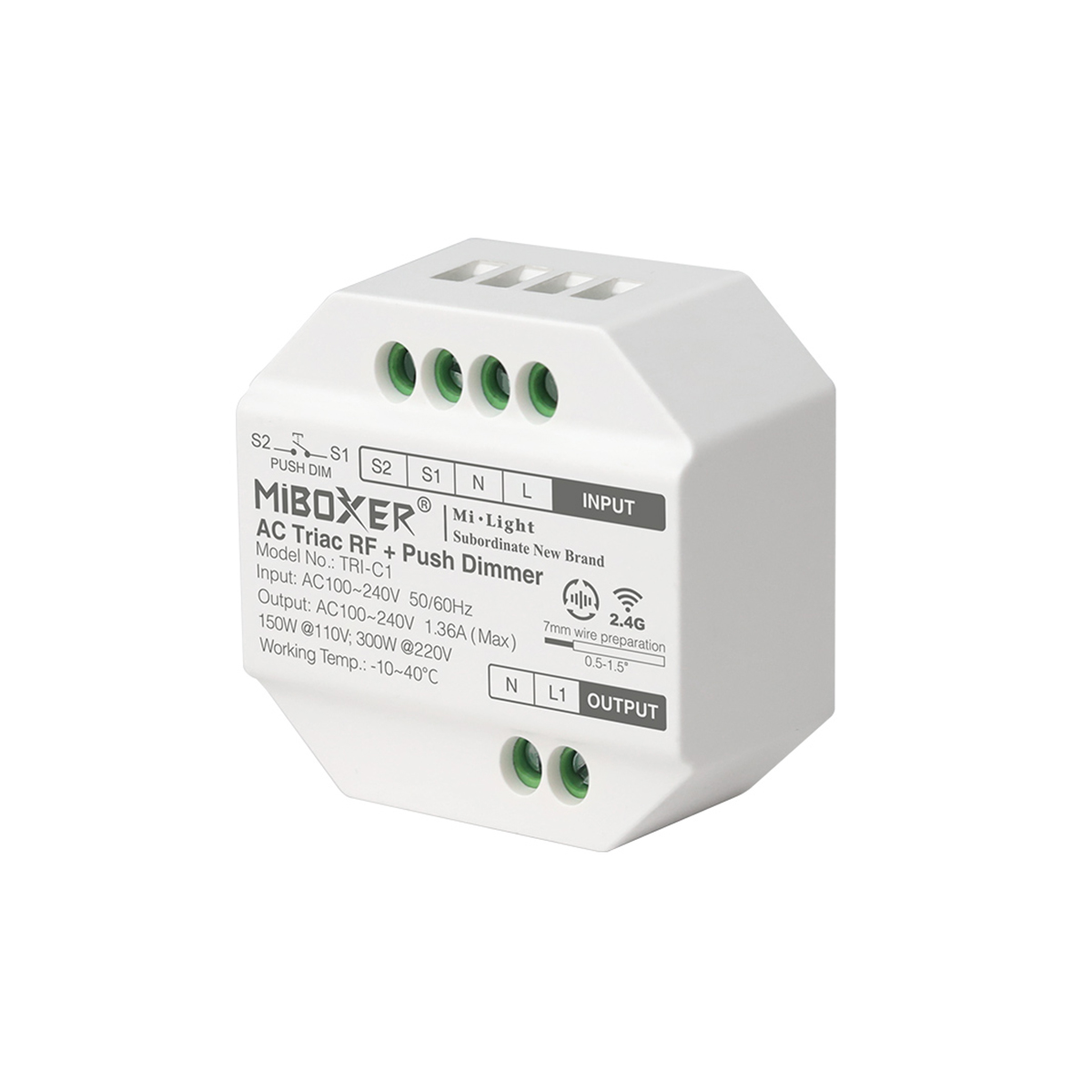 GLOBOSTAR® MiBOXER-TRI-C1 71432 AC Triac RF 2.4Ghz & Push Dimmer με 1 x 1.36A 300W Κανάλι AC 220-240V 1.36A 300W Max IP20 - RF 2.4Ghz & Push Dimming - Μ5 x Π5 x Υ2.3cm - 5 Χρόνια Εγγύηση