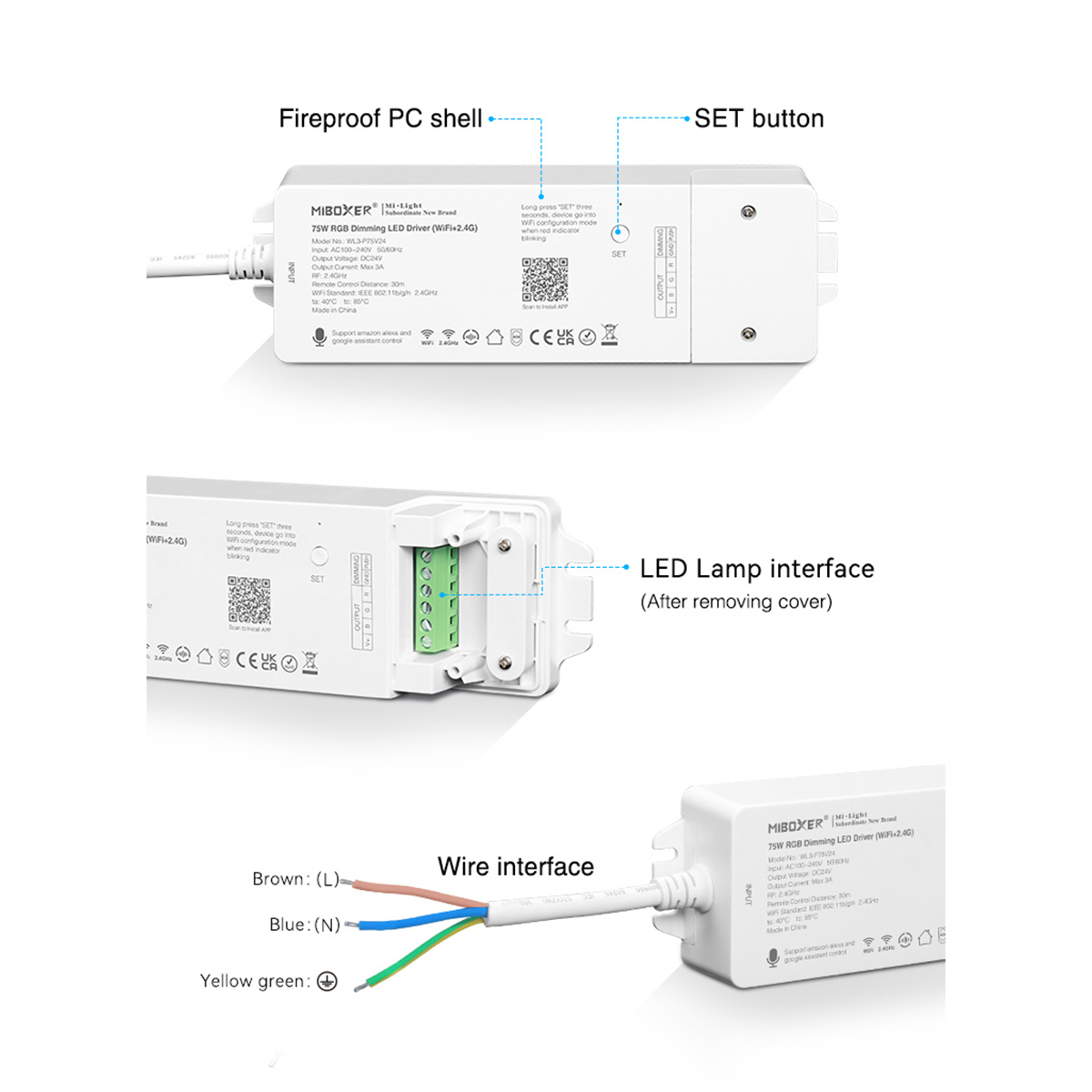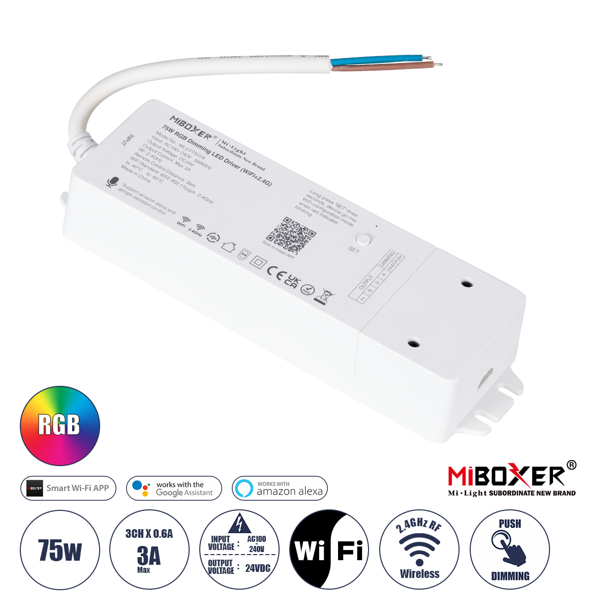 GloboStar® 71439 WL3-P75V24 Mi-BOXER DC Smart Wifi & RF 2.4Ghz & Push Dimming Power Supply Τροφοδοτικό SELV & Controller / Dimmer All in One 3 Καναλιών AC100-240V σε DC 24V 3 x 0.6A 14.4W - Max 3A 75W - IP20 RGB Μ19 x Π5.5 x Υ3.2cm - 5 Years Warranty