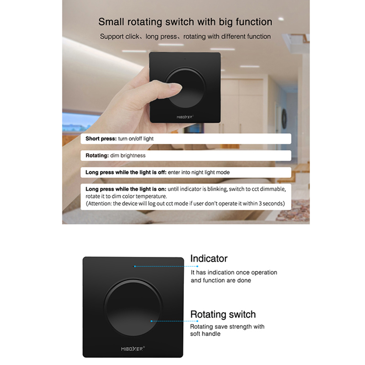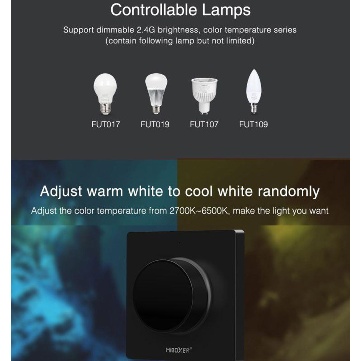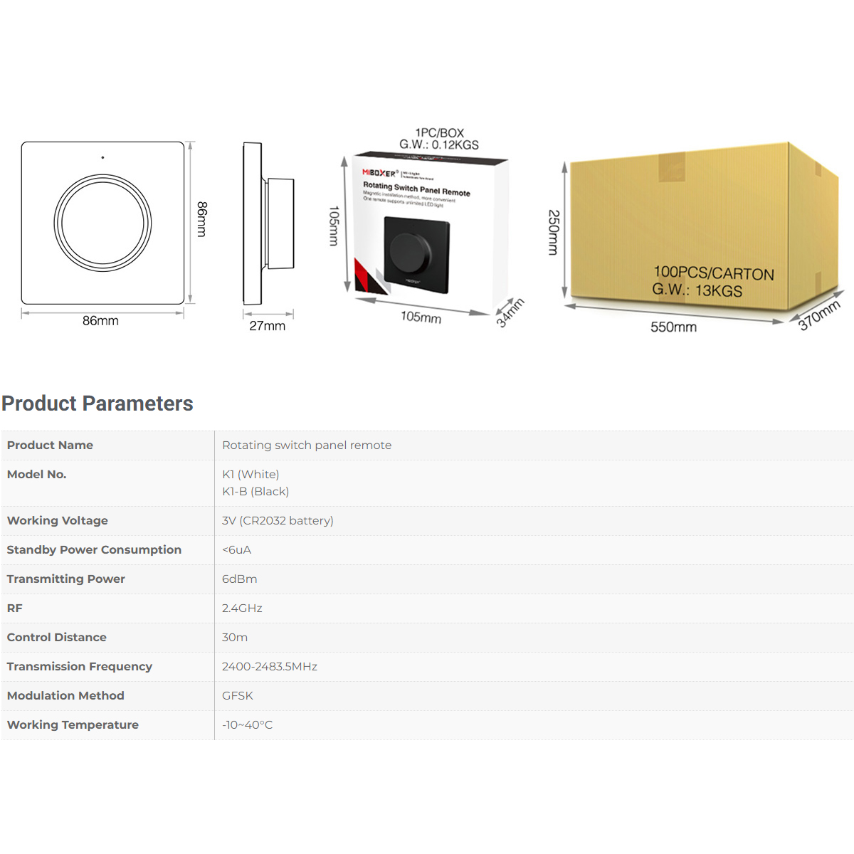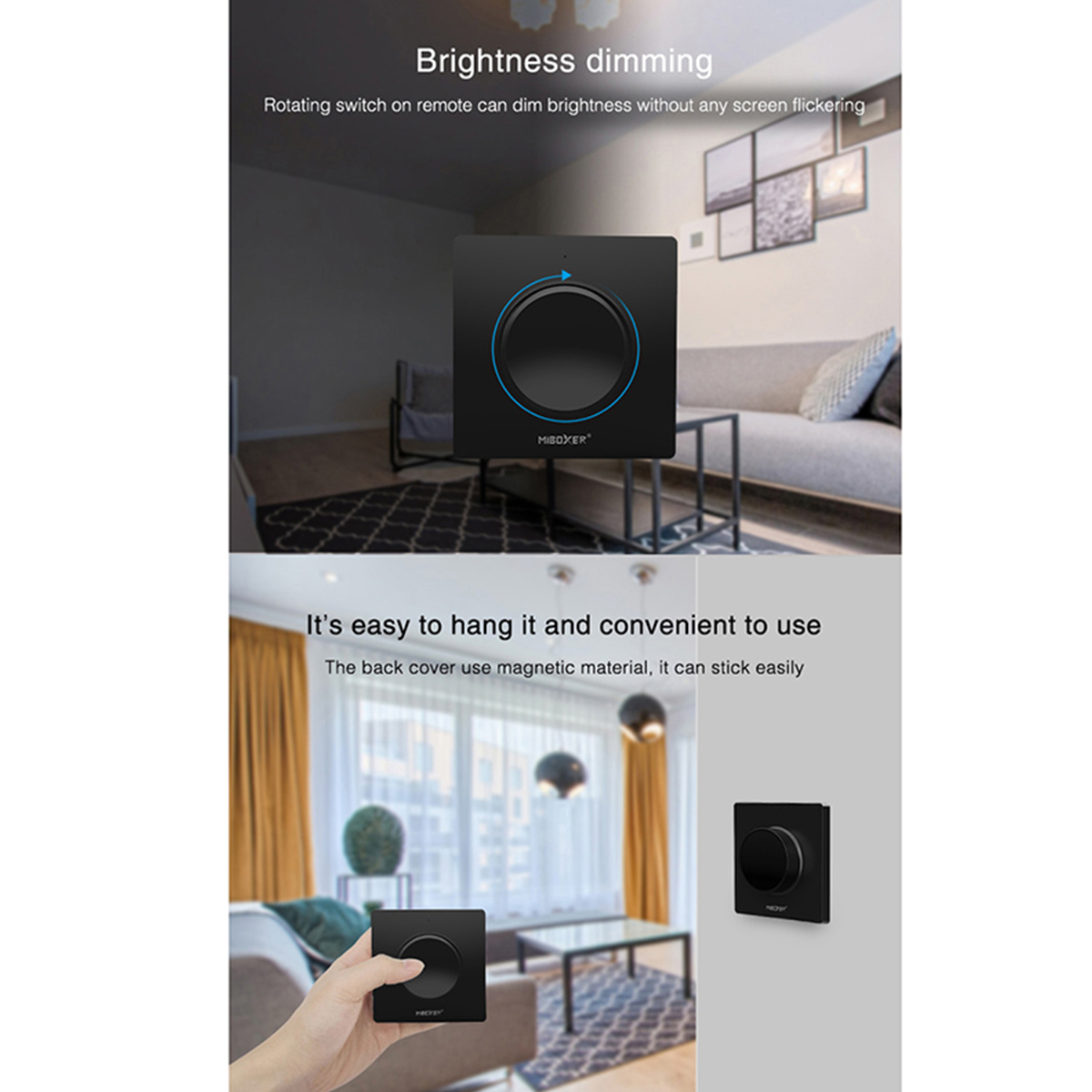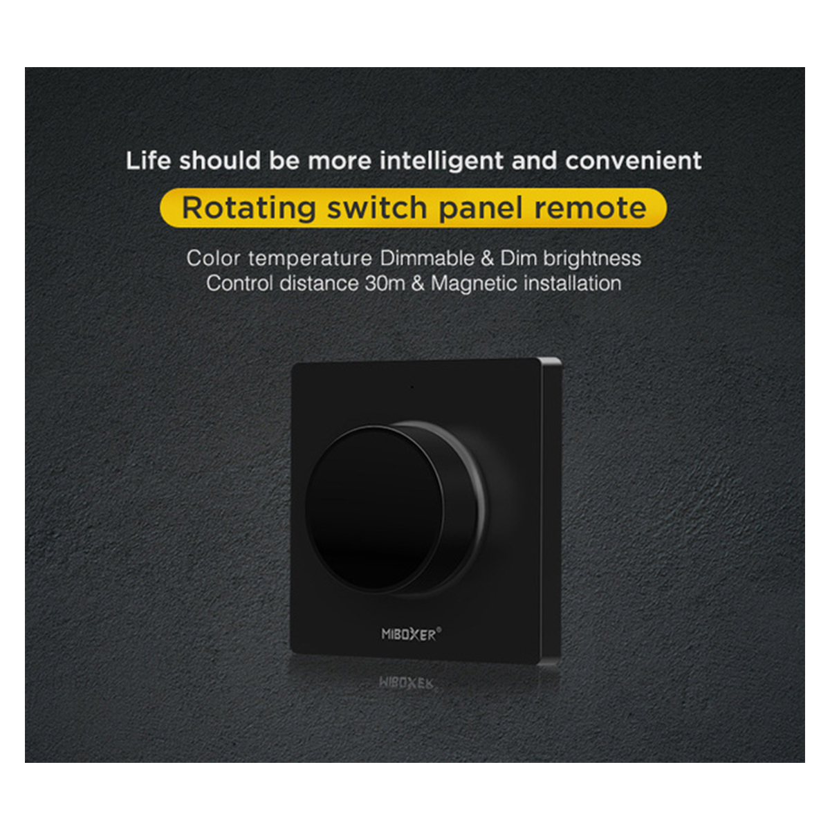 GloboStar® 71444 K1-B Mi-BOXER Ασύρματο Επιτοίχιο Χειριστήριο Dimmer RF 2.4Ghz για όλα τα Μονόχρωμα Mi-BOXER Controller DC 3V 1 x CR2032 - IP20 Μαύρο Μ8.5 x Π8.5 x Υ2.5cm - 5 Years Warranty
