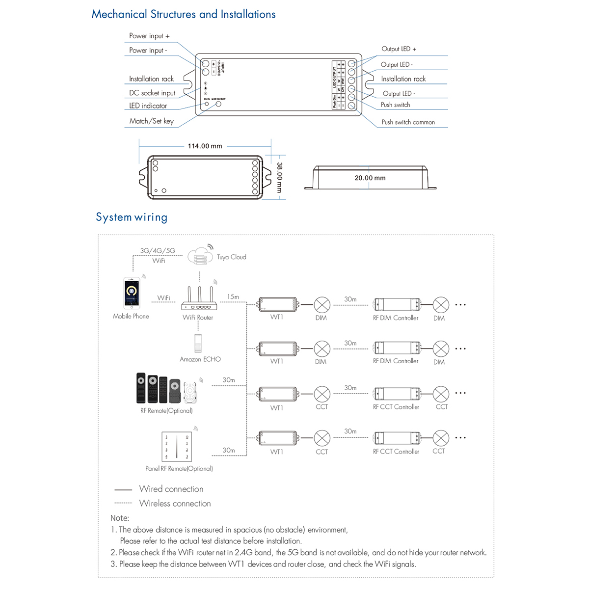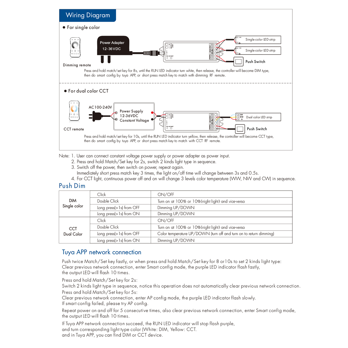 GloboStar® 71468 WT1 SKYDANCE DC WiFi & RF 2.4Ghz Dimmer High Speed Controller 2 Καναλιών DC 12-36V 2 x 5A 180W - Max 10A 180W - IP20 Μ11.5 x Π3.5 x Υ2cm - 5 Years Warranty