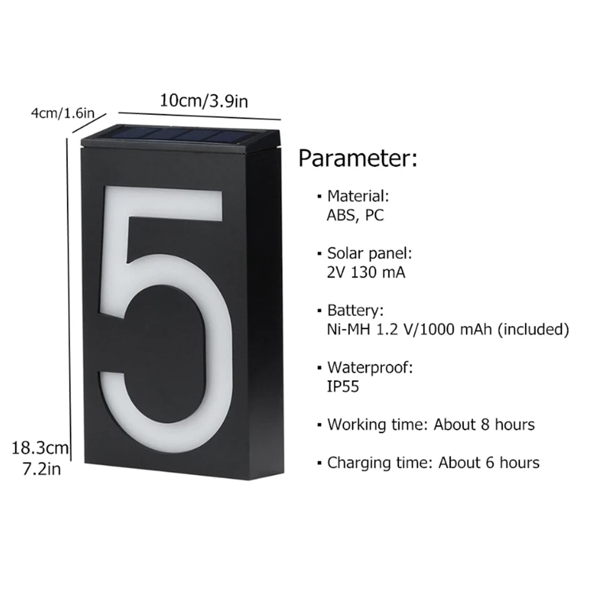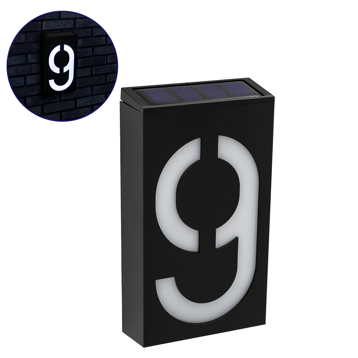 GloboStar® 71519 Αυτόνομο Ηλιακό Φωτιστικό LED SMD 1W 100lm με Ενσωματωμένη Μπαταρία 1000mAh - Φωτοβολταϊκό Πάνελ με Αισθητήρα Ημέρας-Νύχτας για Αρίθμηση Δρόμου με Αριθμό 9 Αδιάβροχο IP55 Ψυχρό Λευκό 6000K