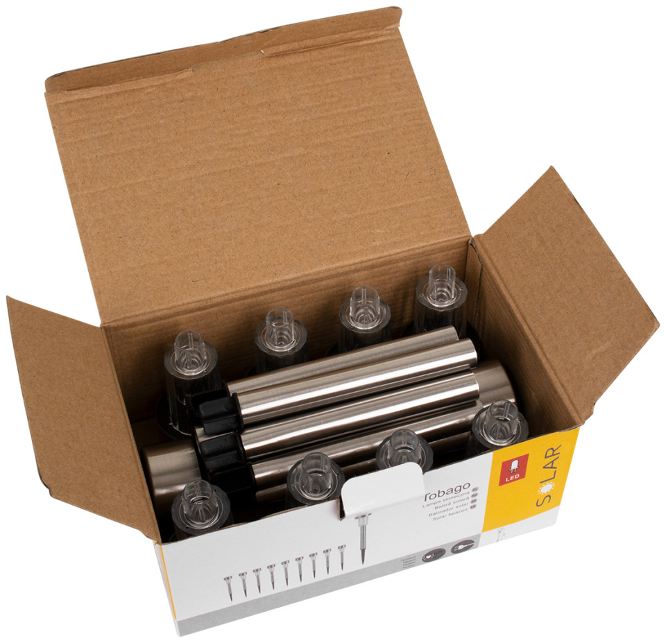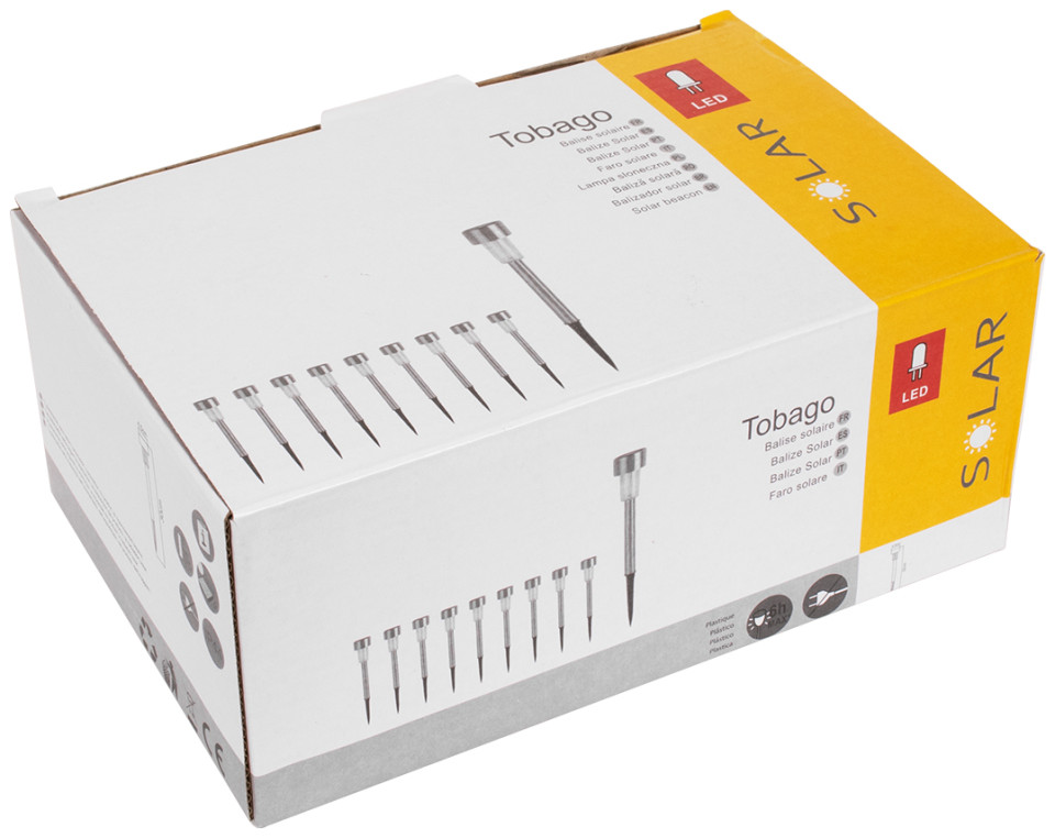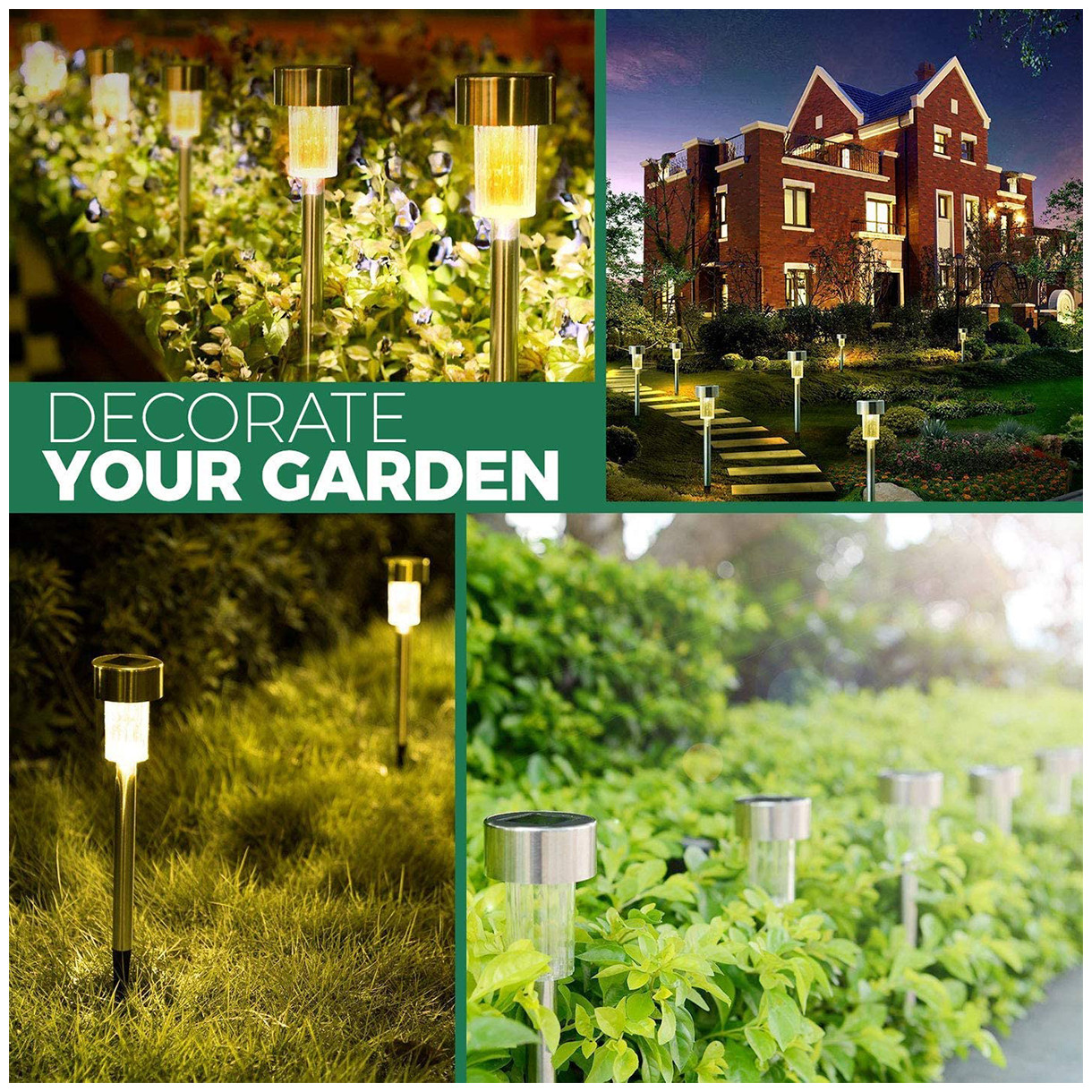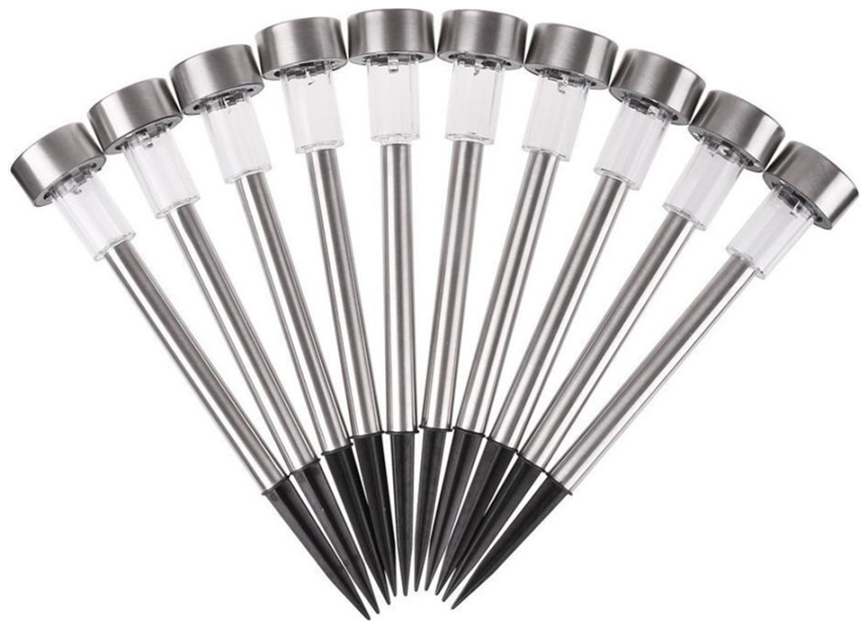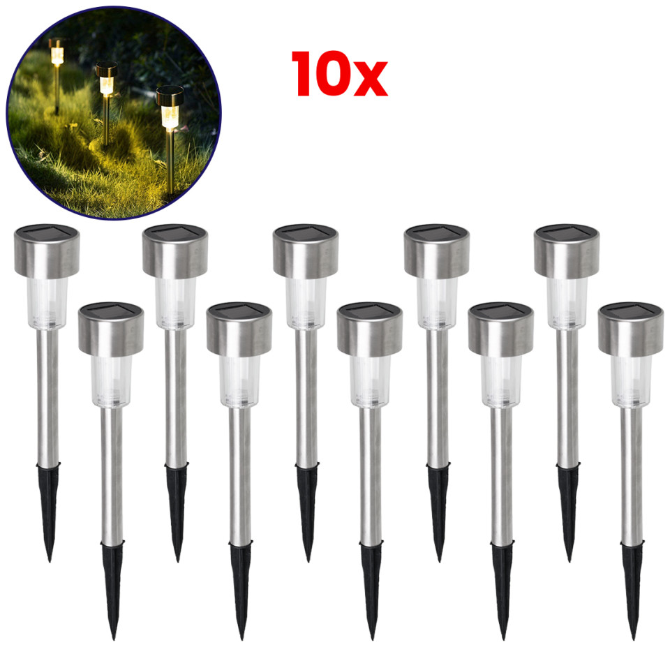 GloboStar® 71521-10 ΣΕΤ 10 Τεμαχίων Αυτόνομα Ηλιακά Φωτιστικά LED SMD 1W 100lm με Ενσωματωμένη Μπαταρία 600mAh - Φωτοβολταϊκό Πάνελ με Αισθητήρα Ημέρας-Νύχτας Αδιάβροχο IP65 Φανάρι Κήπου Στρογγυλό Θερμό Λευκό 3000K. με θερμό φως. Διαθέτει ΙΝΟΧ σκελετό και πλαστικό καπέλο σε μπομπέ σχήμα.