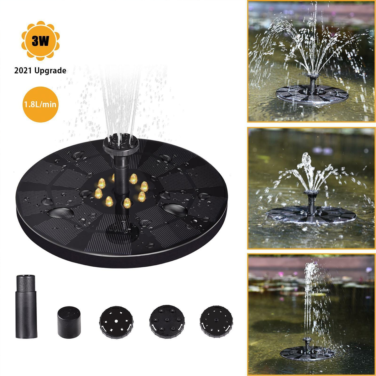 GloboStar® 71531 Ηλιακό Αυτόνομο Φωτοβολταϊκό Διακοσμητικό Συντριβάνι LED 3W με Μέγιστο Ύψος Νερού 30-60cm - 4 Διαφορετικά Μπέκ Ψεκασμού Αδιάβροχο IP68 Θερμό Λευκό 2700K Φ18 x Υ8cm