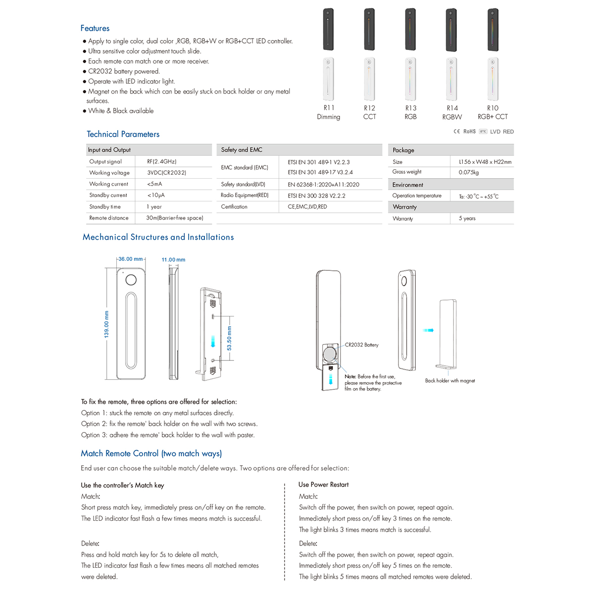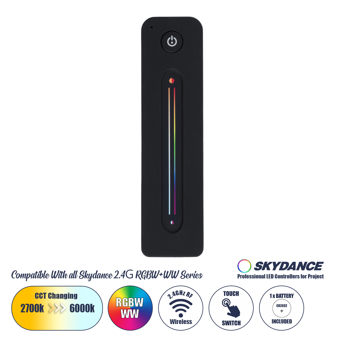 GloboStar® 71545 R10 SKYDANCE Ασύρματο Χειριστήριο Αφής RF 2.4Ghz 1 Group για όλα τα RGBW+WW+CCT SKYDANCE Controller DC 3V 1 x CR2032 - IP20 Μαύρο Μ12.2 x Π5.3 x Υ1.7cm - 5 Years Warranty