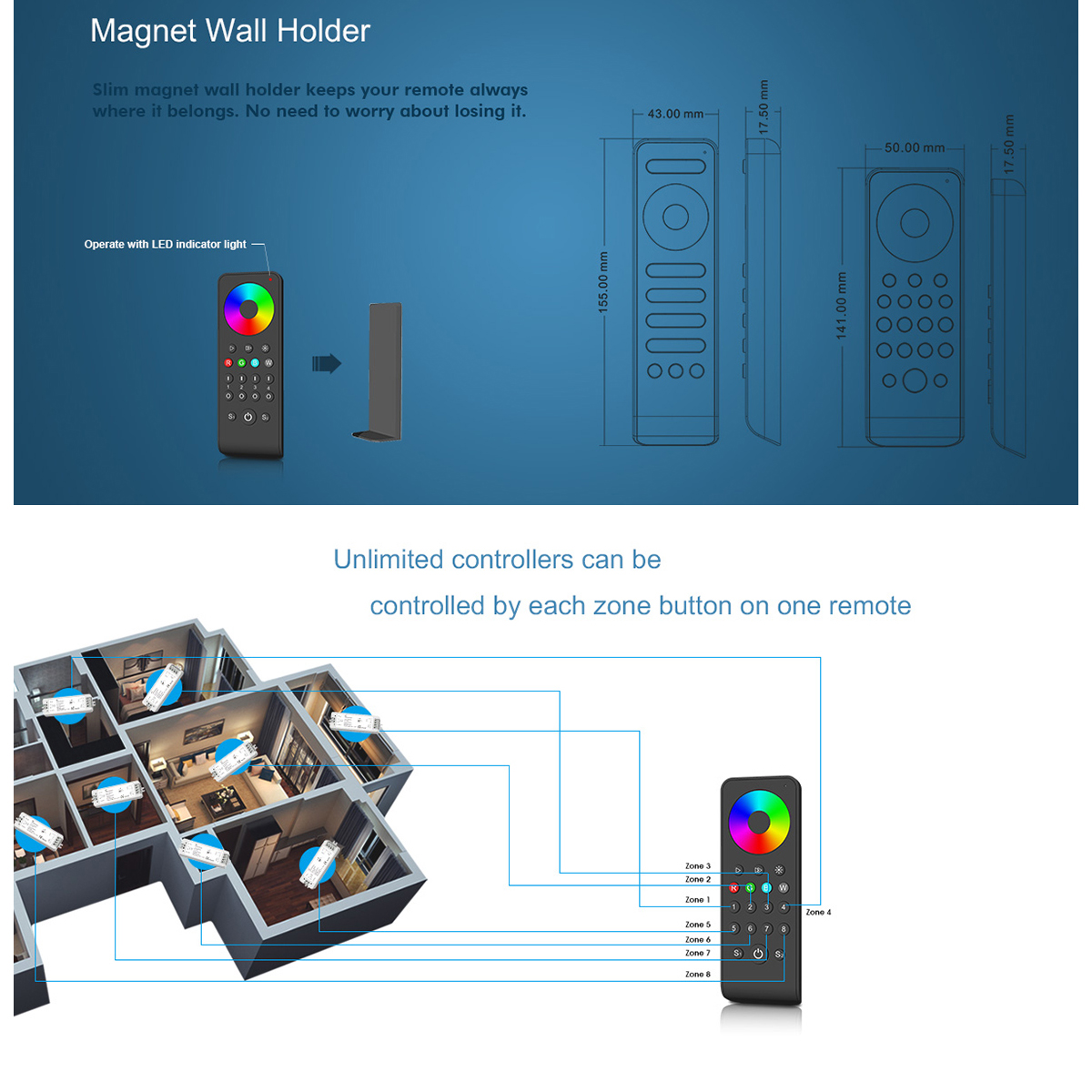 GloboStar® 71563 RS4 SKYDANCE Ασύρματο Χειριστήριο Αφής RF 2.4Ghz 4 Group για όλα τα RGB/RGBW SKYDANCE Controller DC 3V 2 x AAA - IP20 Μαύρο Μ14 x Π5 x Υ1.9cm - 5 Years Warranty