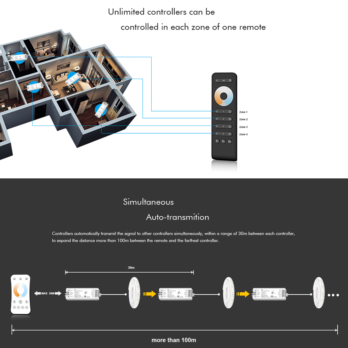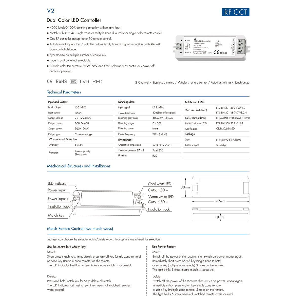 GloboStar® 71564 V2 SKYDANCE DC RF 2.4Ghz Dimmer High Speed Controller 2 Καναλιών DC 12-24V 2 x 5A 120W - Max 10.5A 252W - IP20 Μ10 x Π3.5 x Υ2cm - 5 Years Warranty