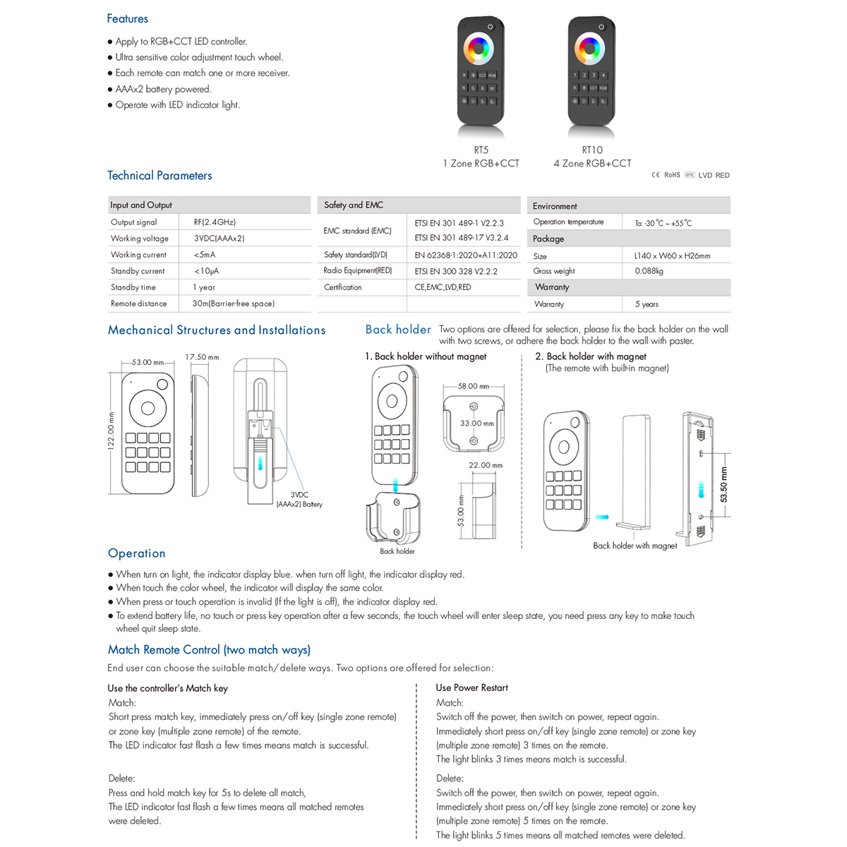 GloboStar® 73009 RT5 SKYDANCE Ασύρματο Χειριστήριο Αφής RF 2.4Ghz 1 Group για όλα τα RGBW+WW SKYDANCE Controller DC 3V 2 x AAA - IP20 Μαύρο Μ5.3 x Π1.75 x Υ12.2cm - 5 Years Warranty