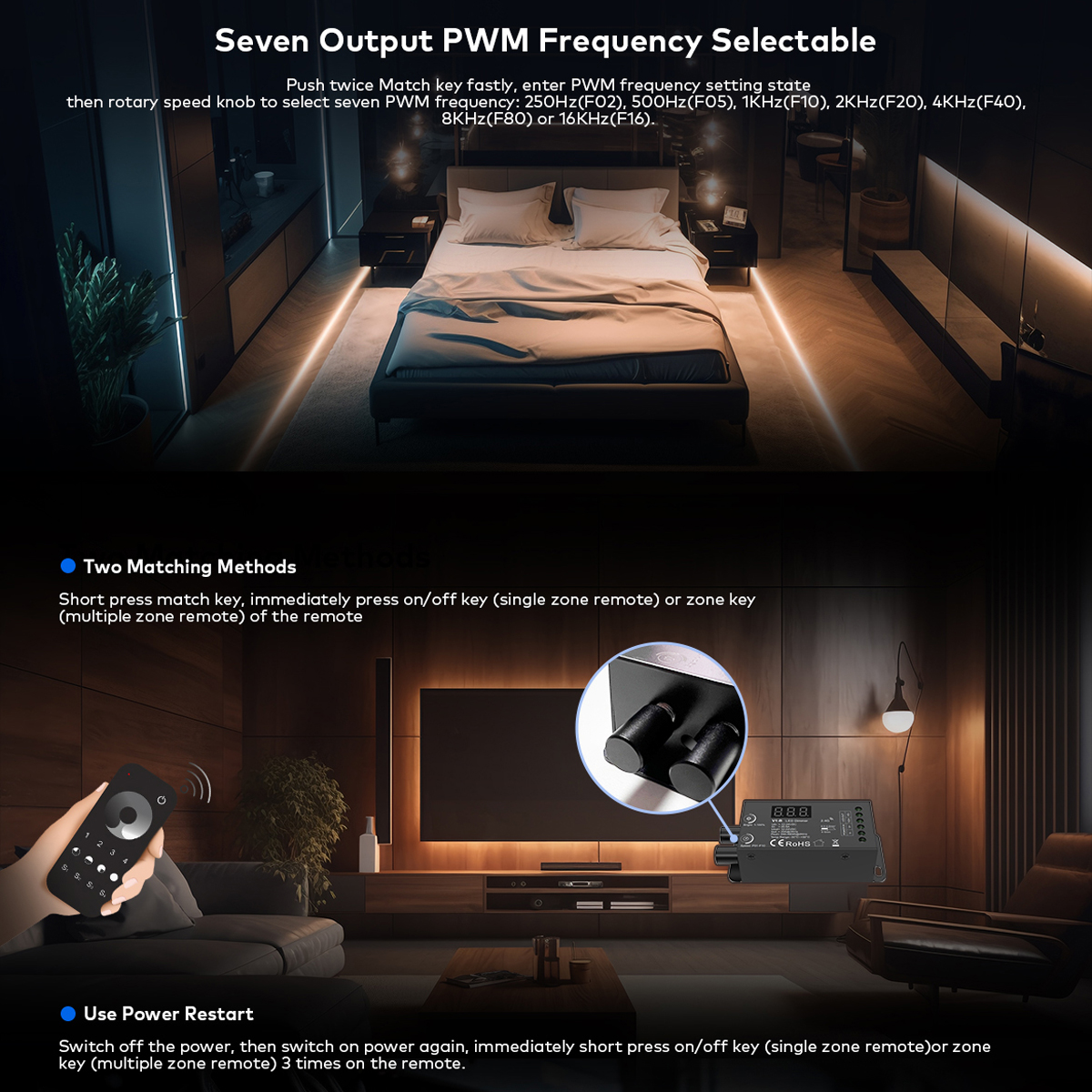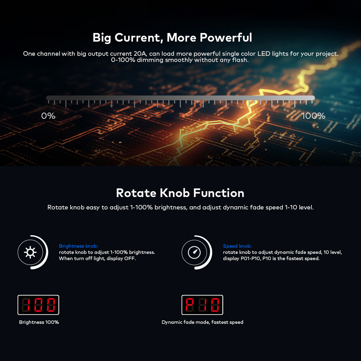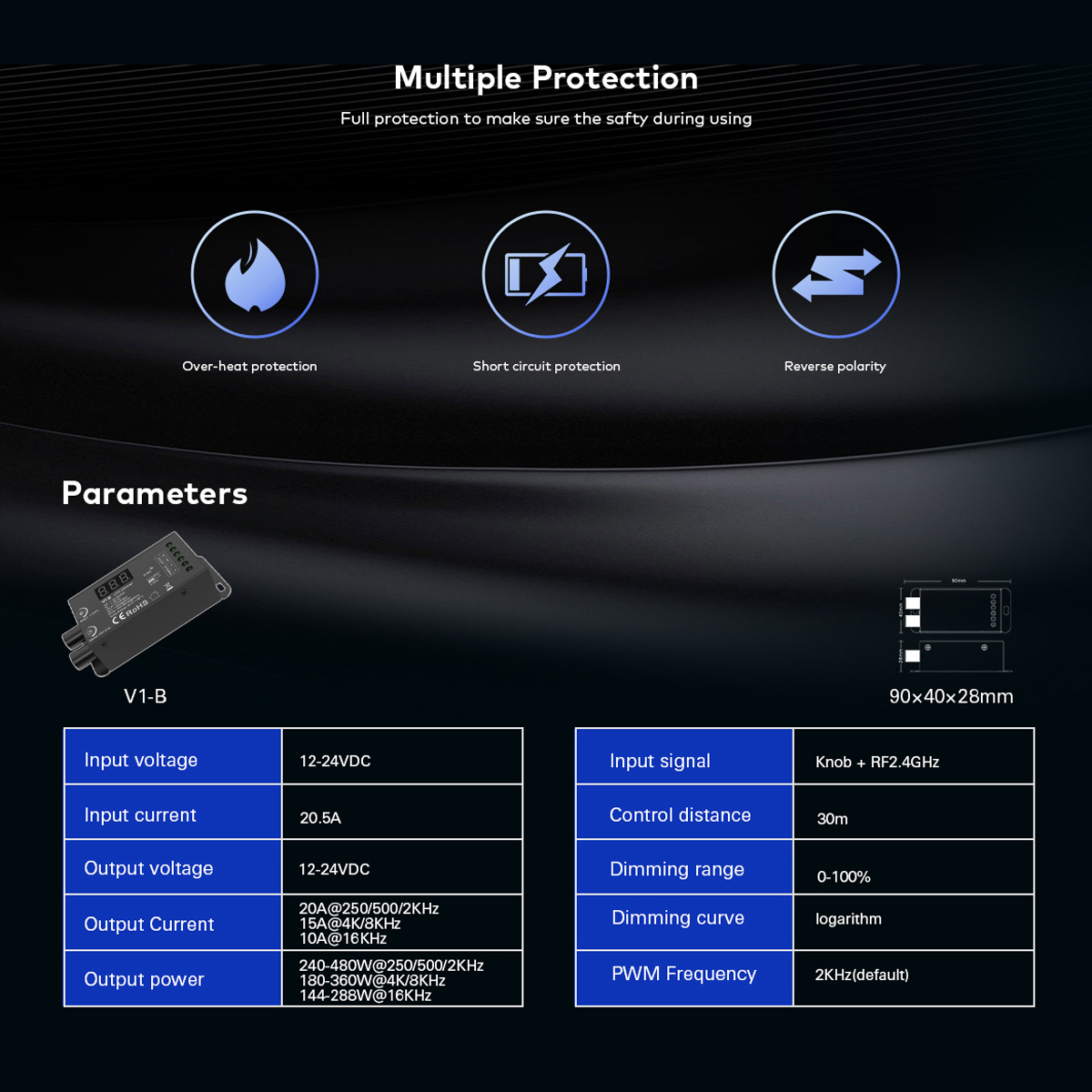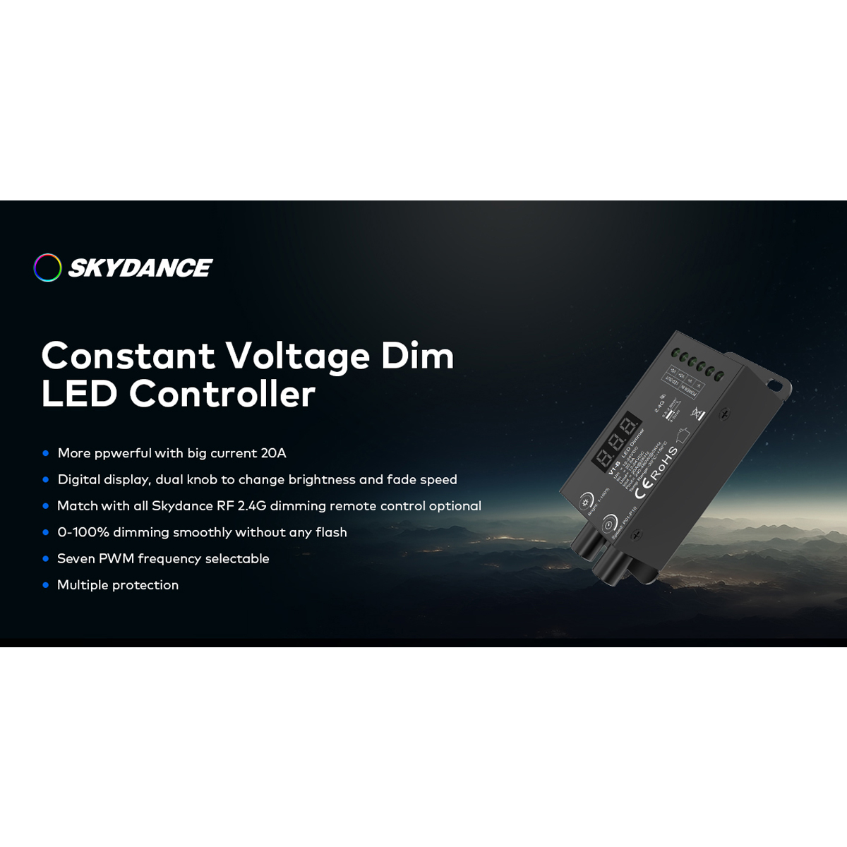 GloboStar® 73116 V1-B SKYDANCE DC RF 2.4Ghz Dimmer Constant Voltage Controller 1 Κανάλι DC 12-24V 1 x 20.5A 480W - Max 20.5A 480W - IP20 Μ9 x Π4 x Υ2.8cm - 5 Χρόνια Εγγύηση