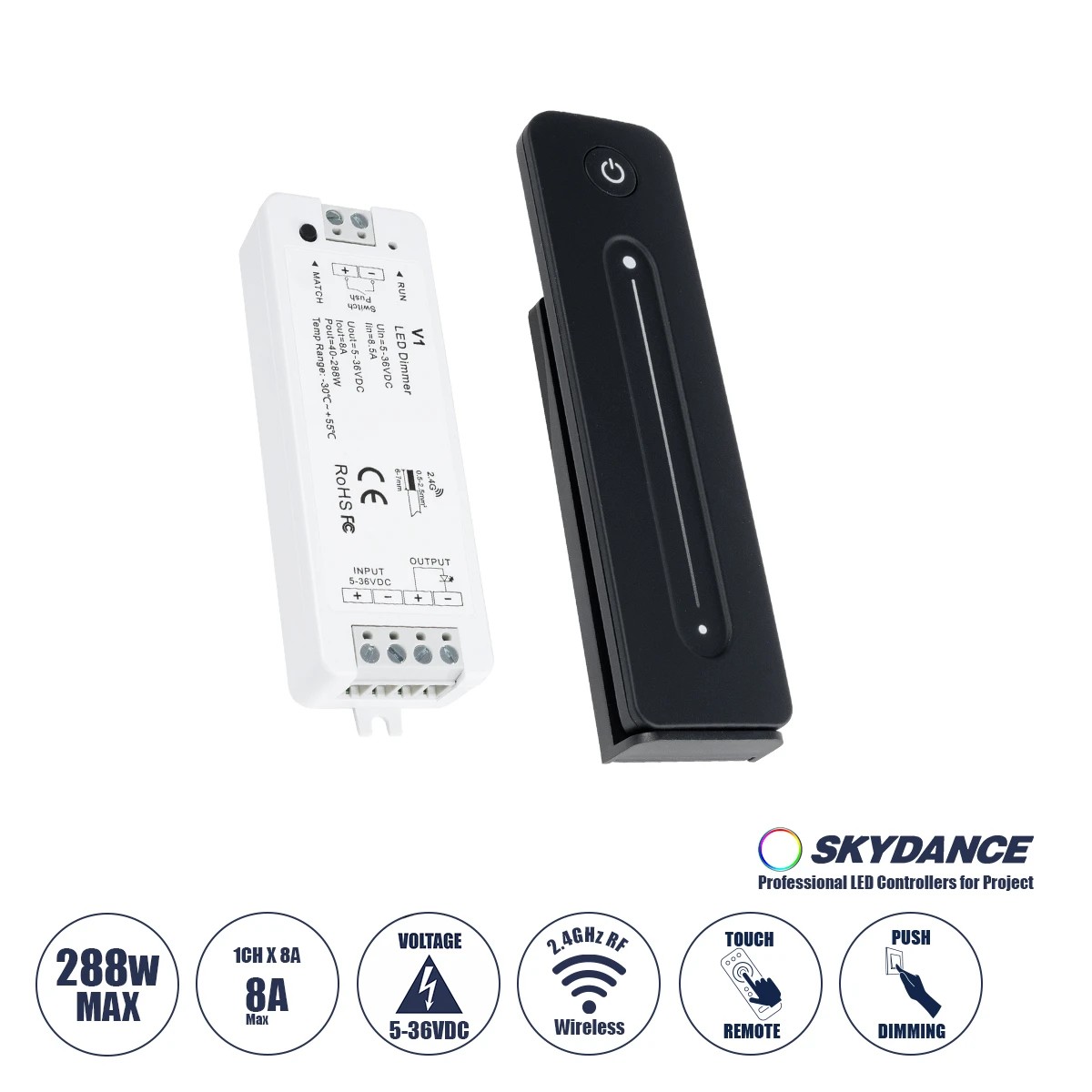 GloboStar® 73119 V1+R11 SKYDANCE ΣΕΤ Dimmer & Ασύρματο Χειριστήριο Αφής 1 Group RF 2.4Ghz 8A Max DC 5-36V (288W) - DC 3V IP20 - 5 Χρόνια Εγγύηση